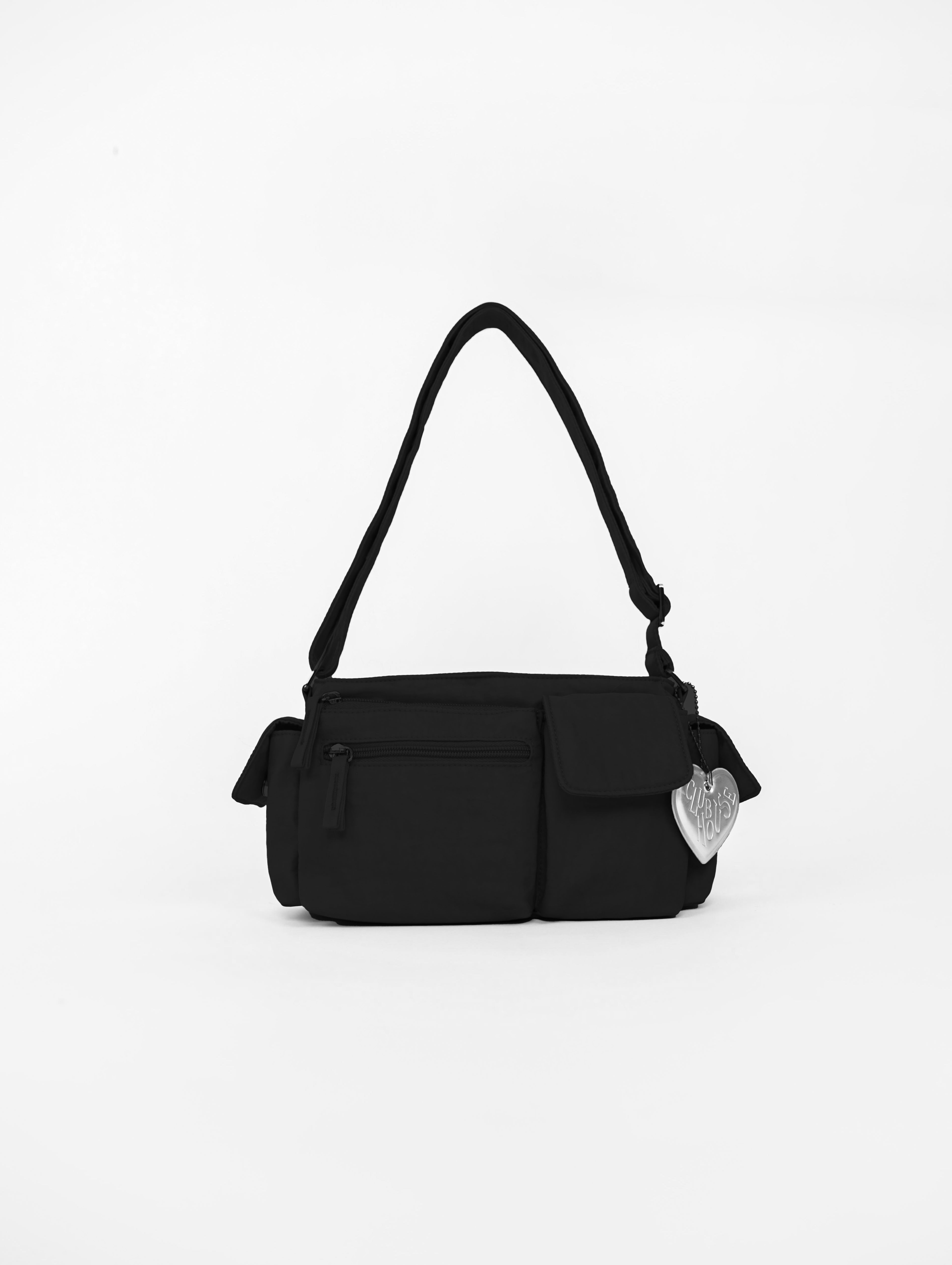 This bag is made of nylon material with a water-resistant exterior and inner lining. It is complete with zipper closures, adjustable shoulder straps, five outer pockets, and two inner pockets.