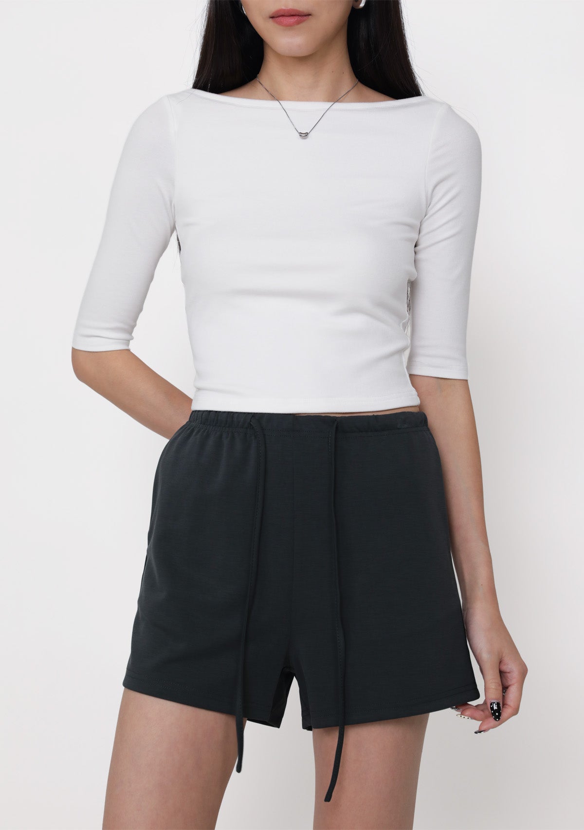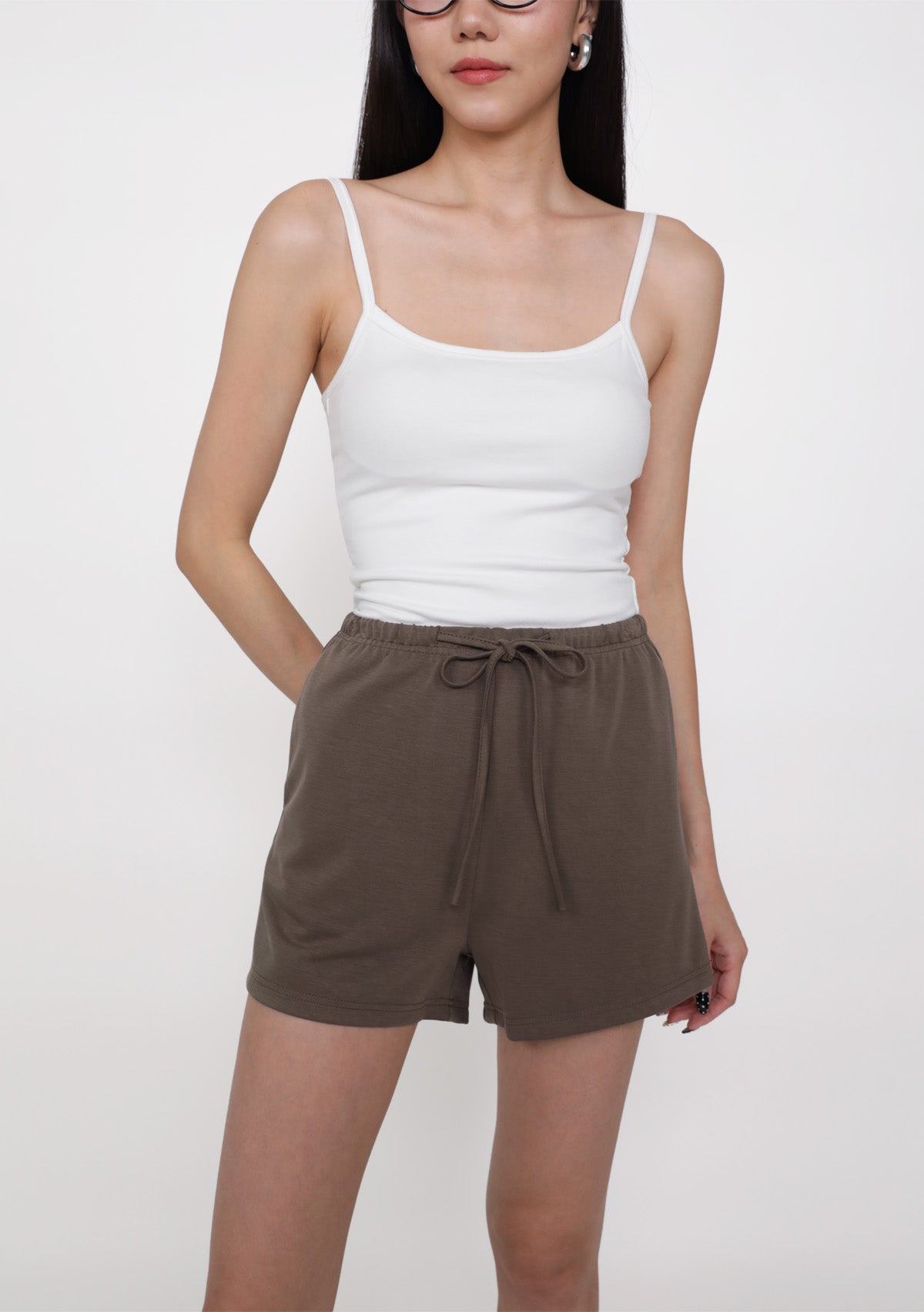 (BUTTER) Mogen Basic Lounge Shorts are non-lined lounge shorts made from a polyester rayon spandex blend, featuring an elasticised waistband and drawstring detail.