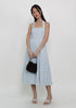 This dress is made of cotton material and is inner lined, complete with removable paddings, a smocked back, and a functional concealed back zip.