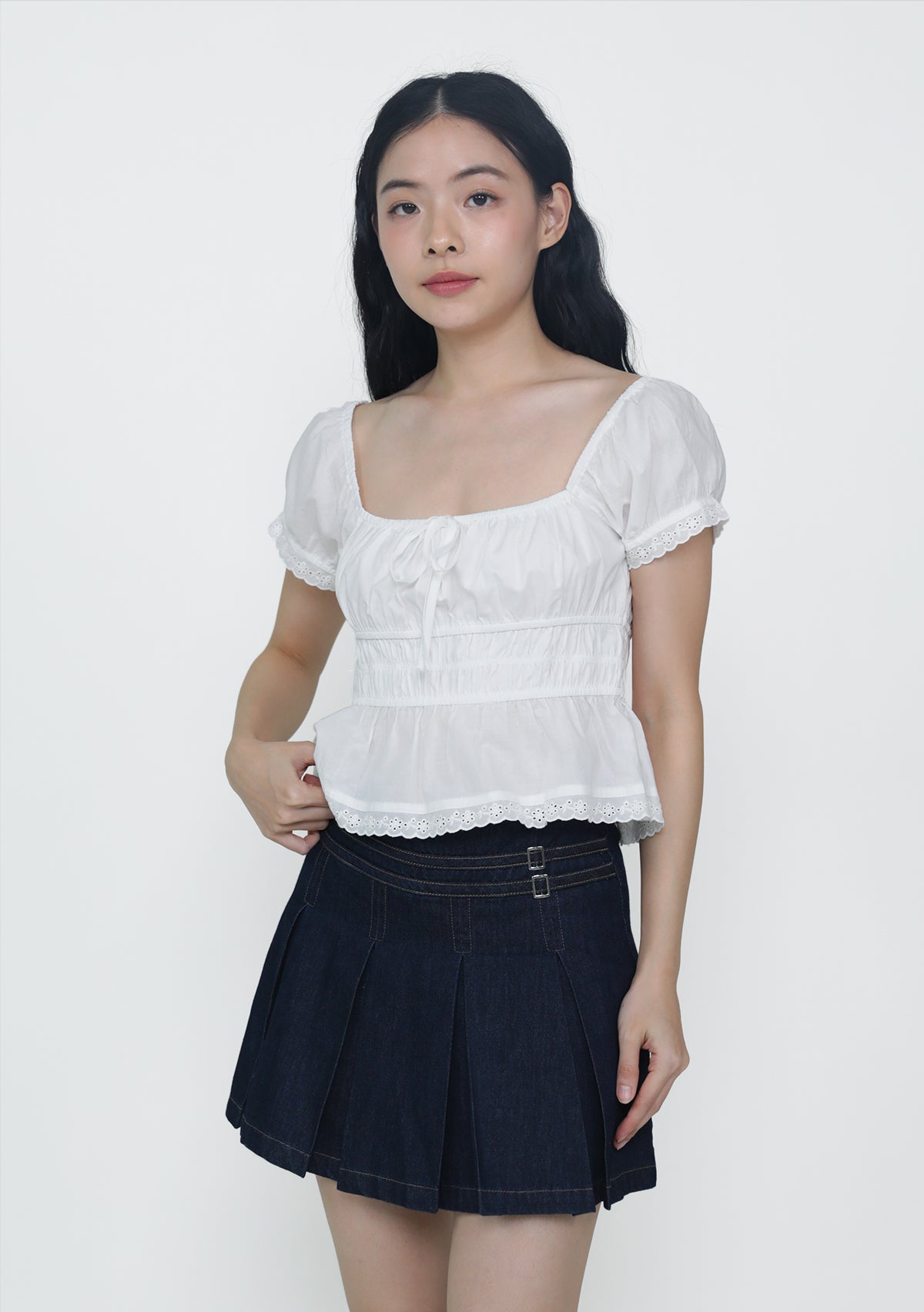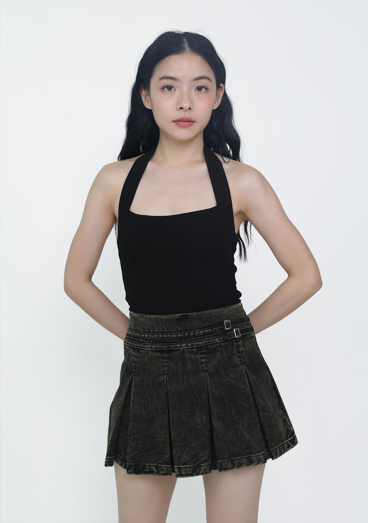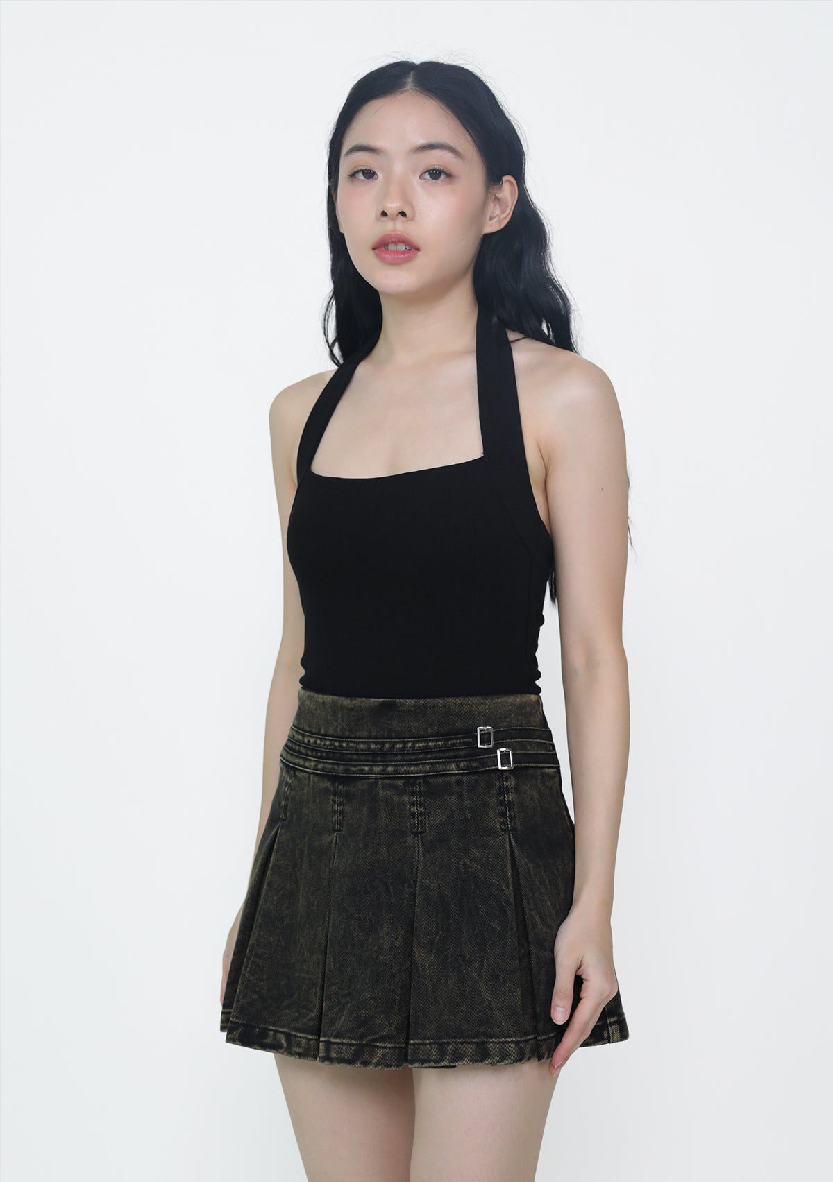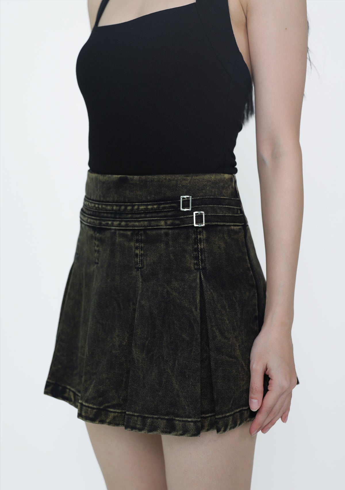 The Skye Pleated Denim Skorts is playful yet polished. It features classic pleats and silver-buckle straps that cinch and flatter the waistline. Made from mid-weight denim that holds its shape while remaining wearable, this piece is the perfect blend of comfort and clean structure.