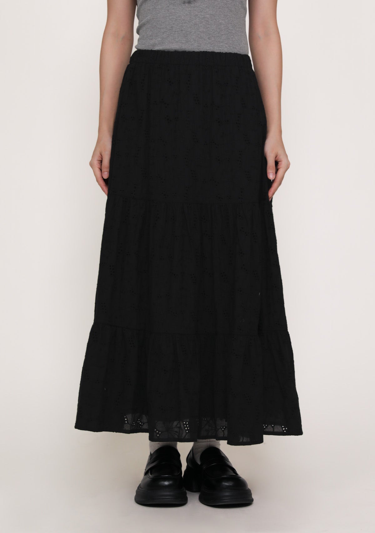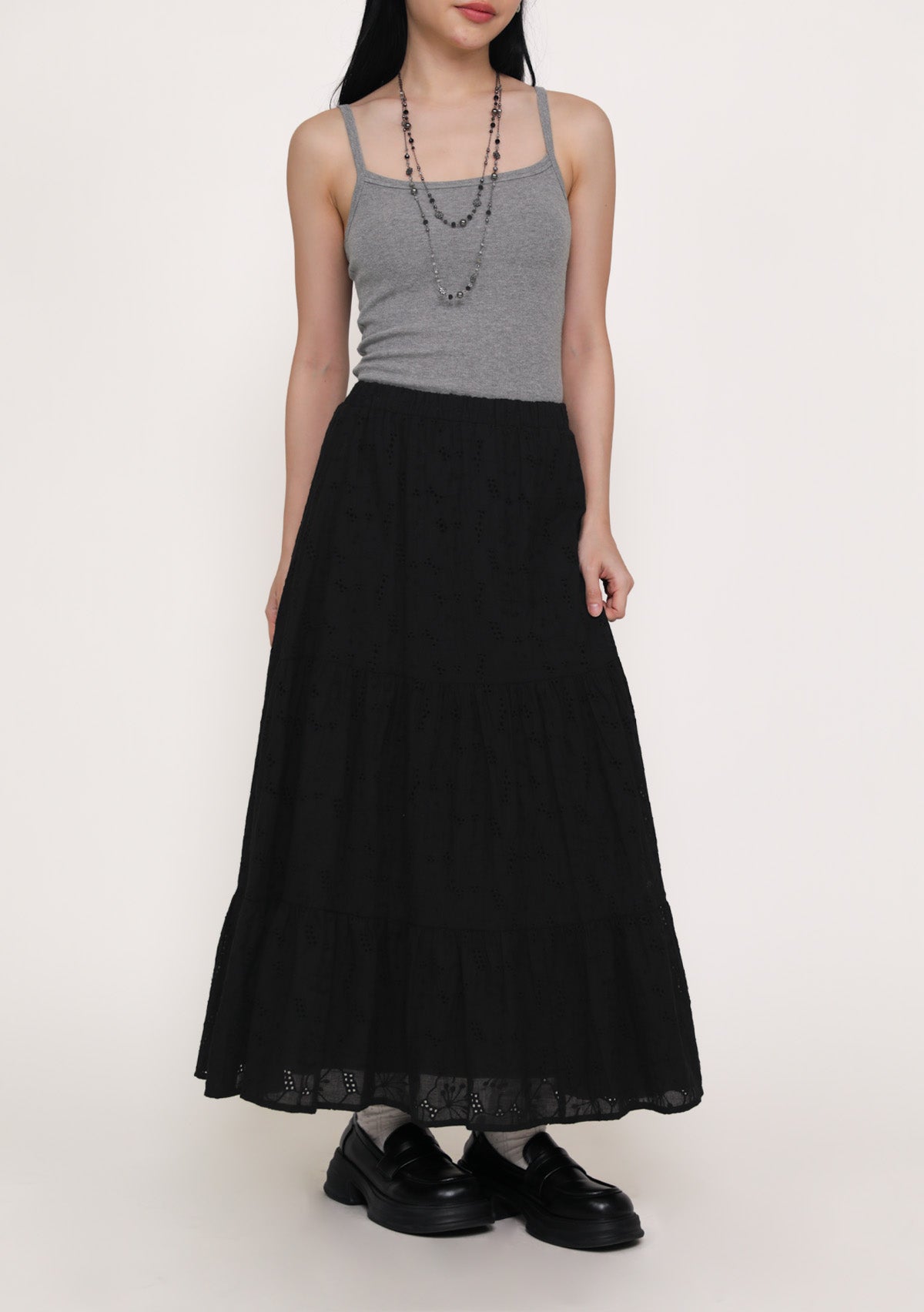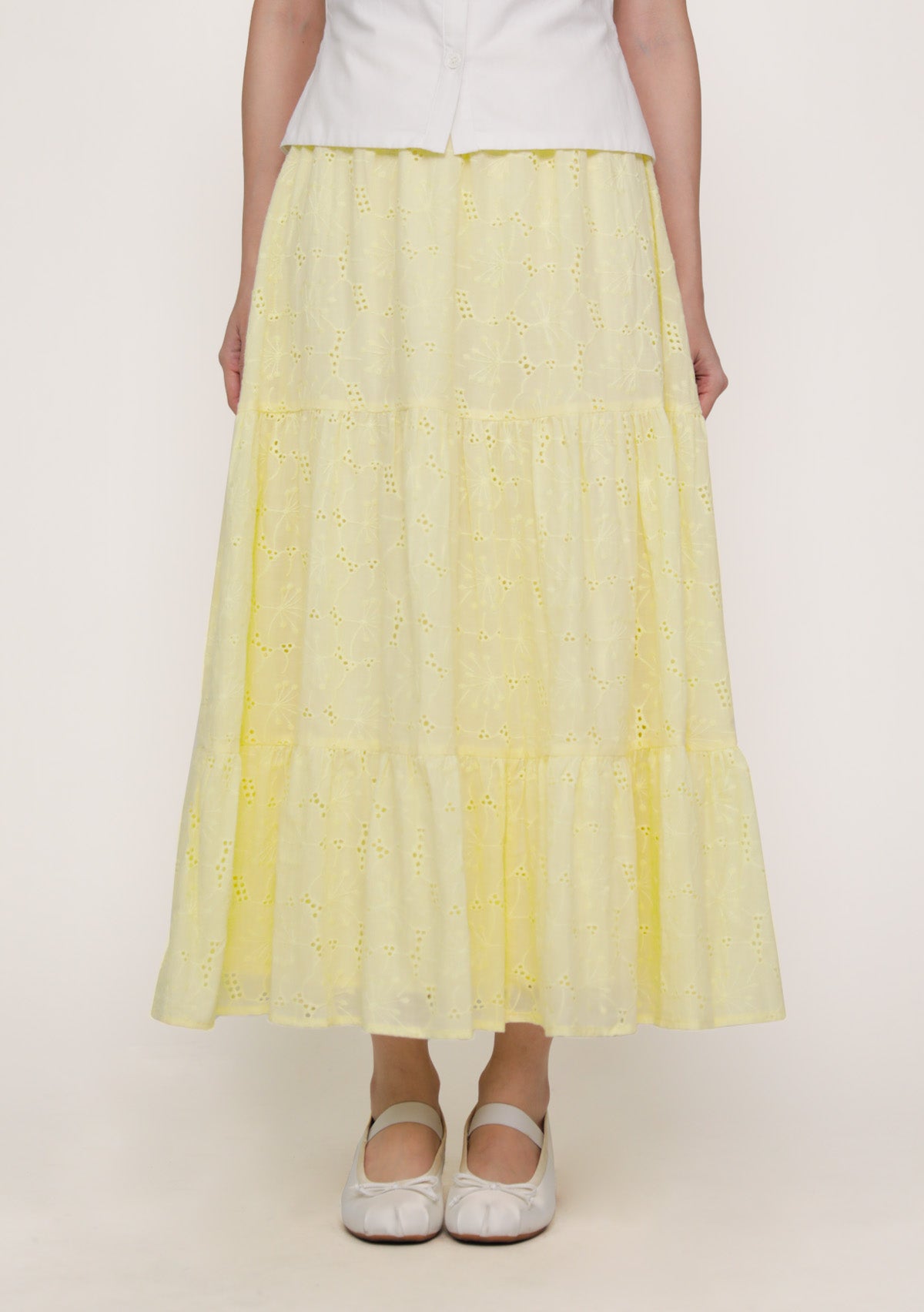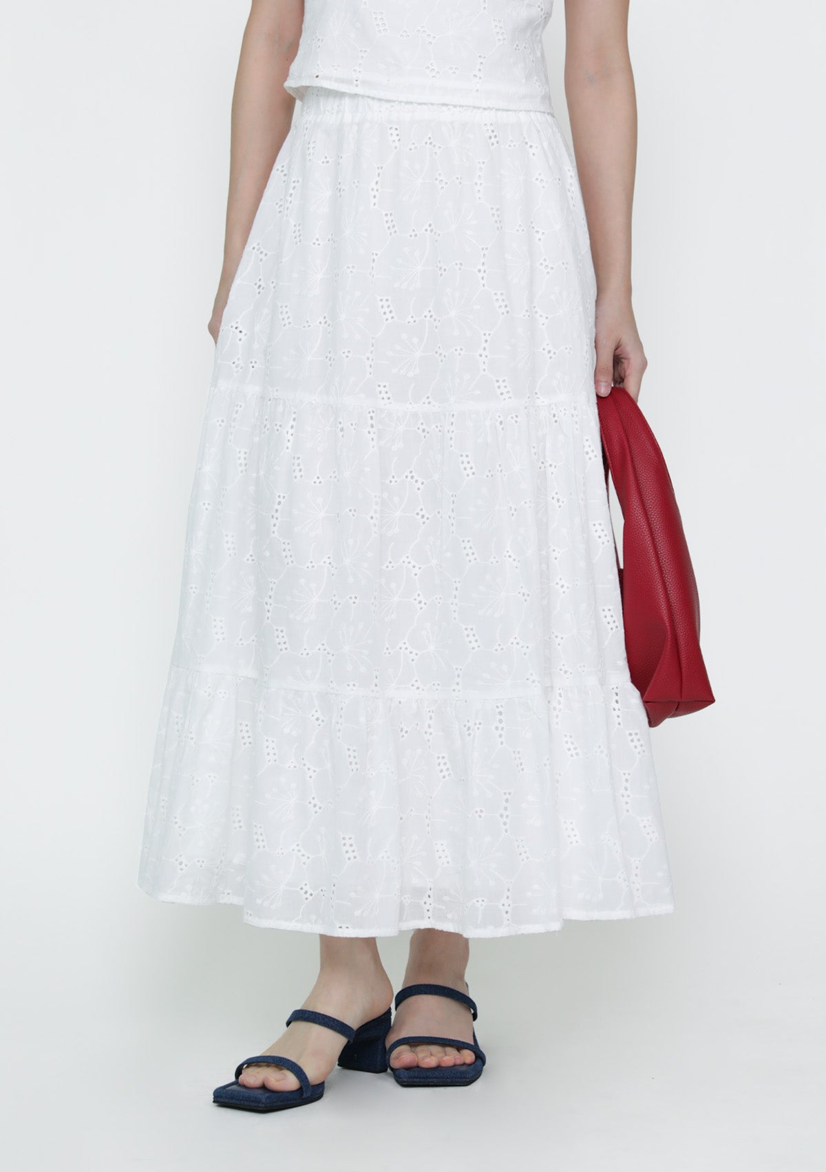 The Jardin Skirt is crafted from floral eyelet fabric and tiered for graceful volume with every step. It features an elastic waistband to keep things comfy, while bringing a touch of romance to your everyday rotation.