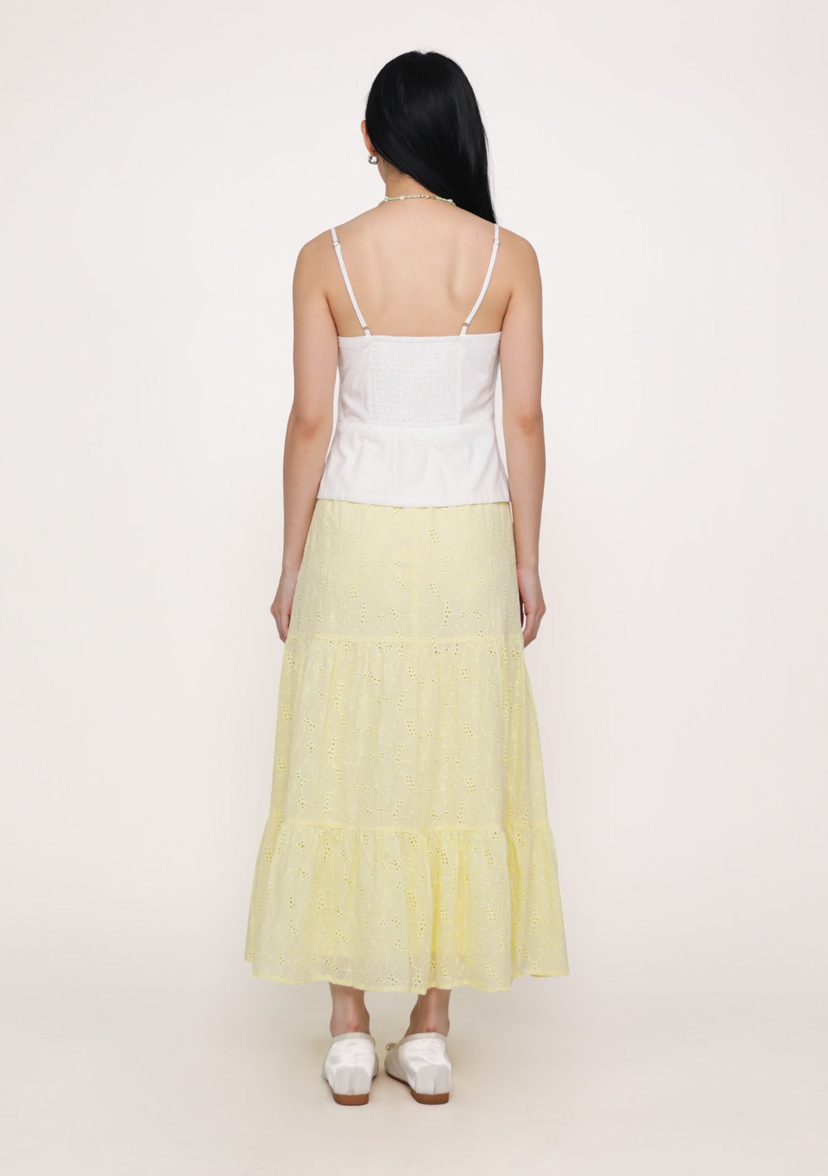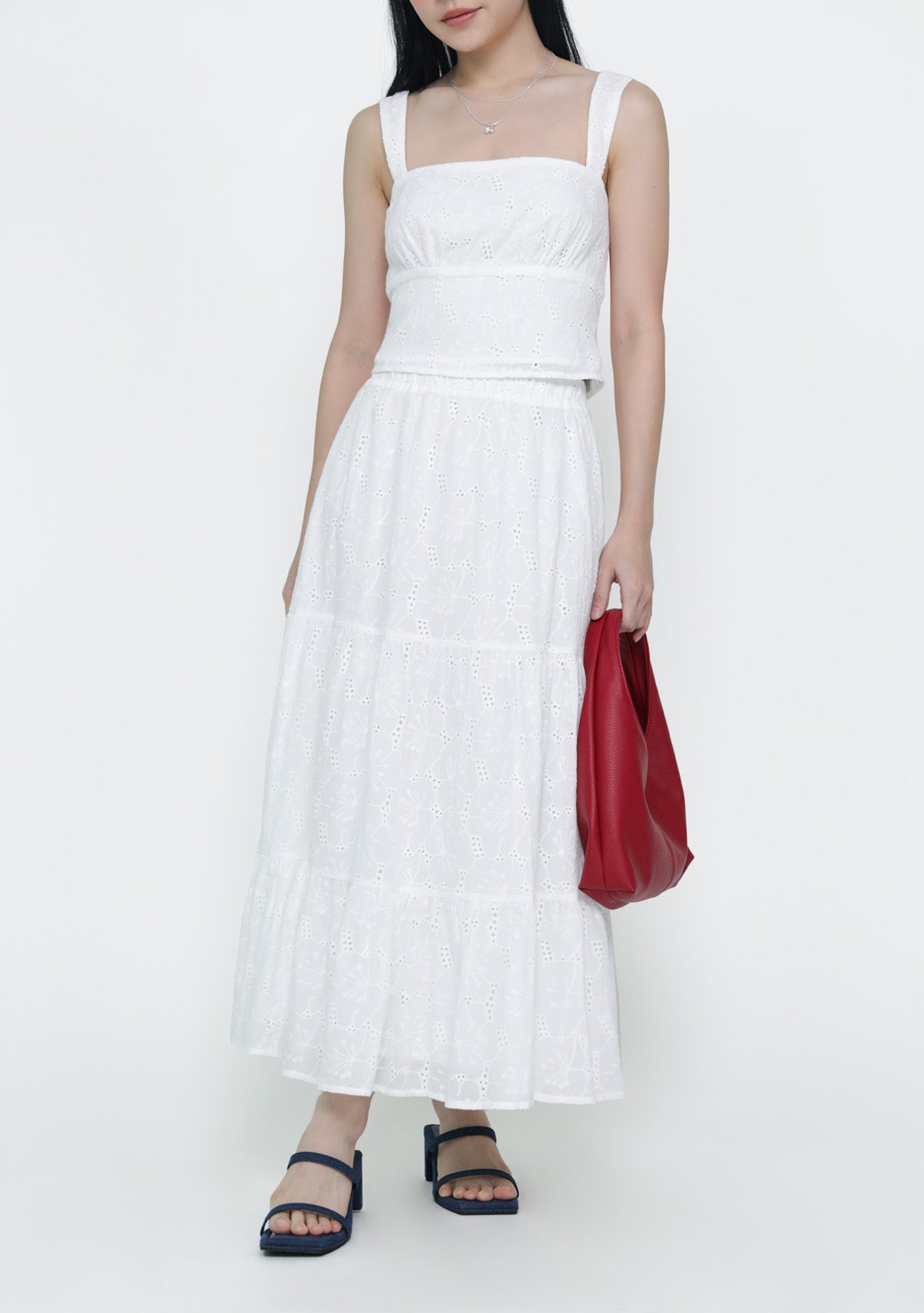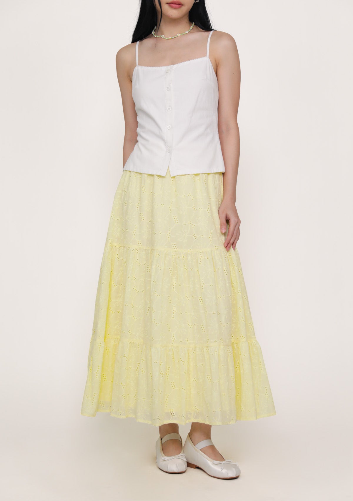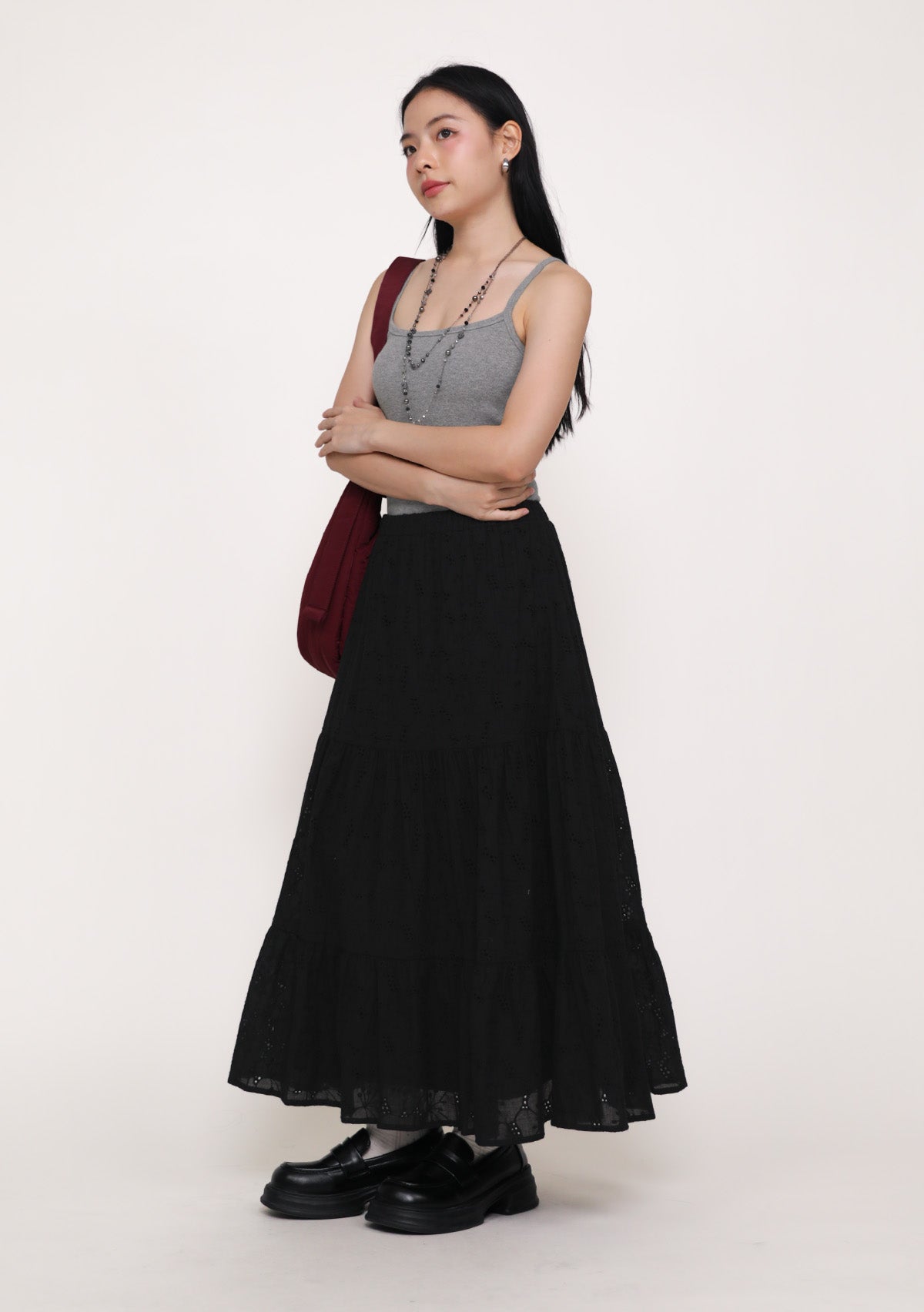 The Jardin Skirt is crafted from floral eyelet fabric and tiered for graceful volume with every step. It features an elastic waistband to keep things comfy, while bringing a touch of romance to your everyday rotation.
