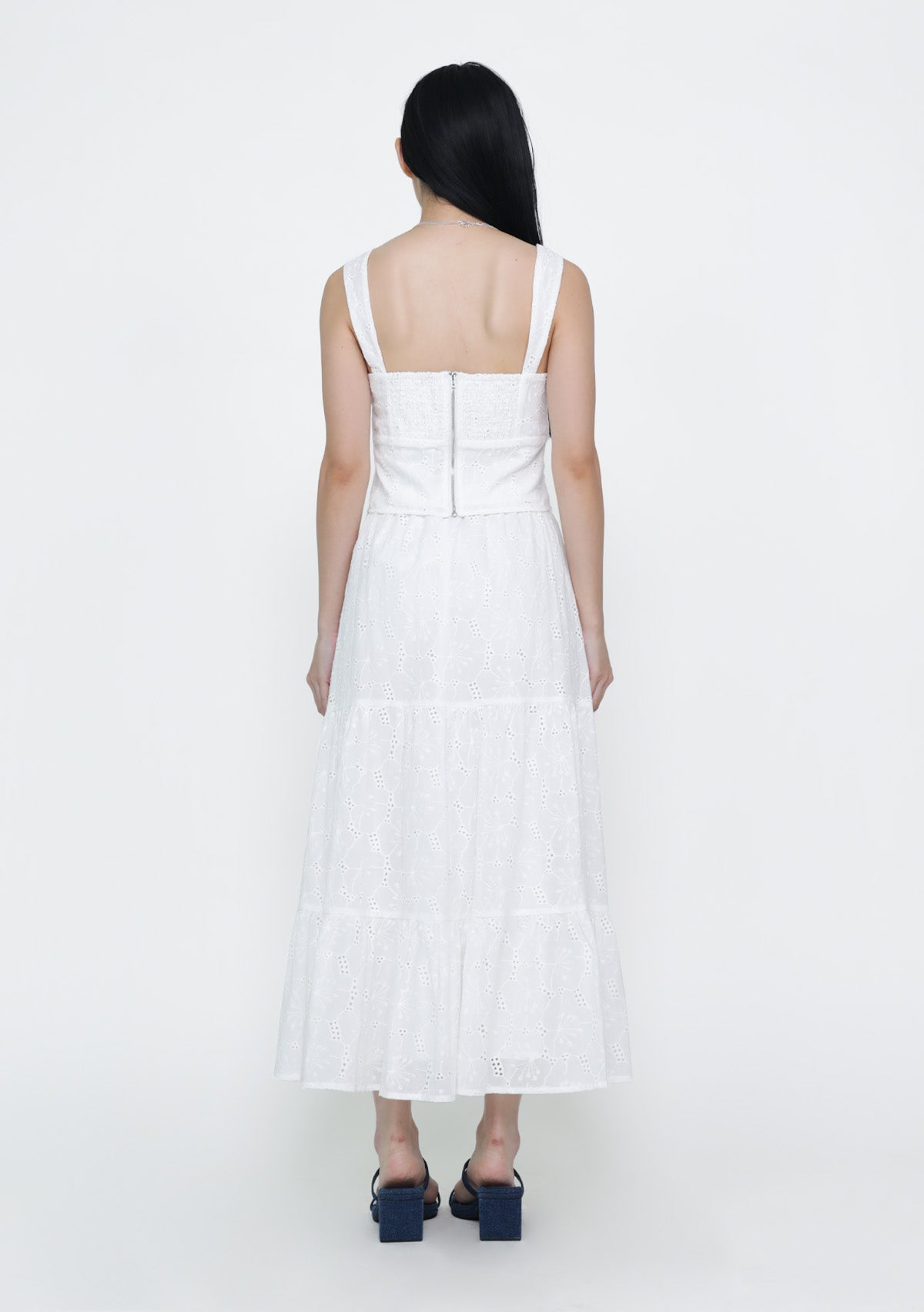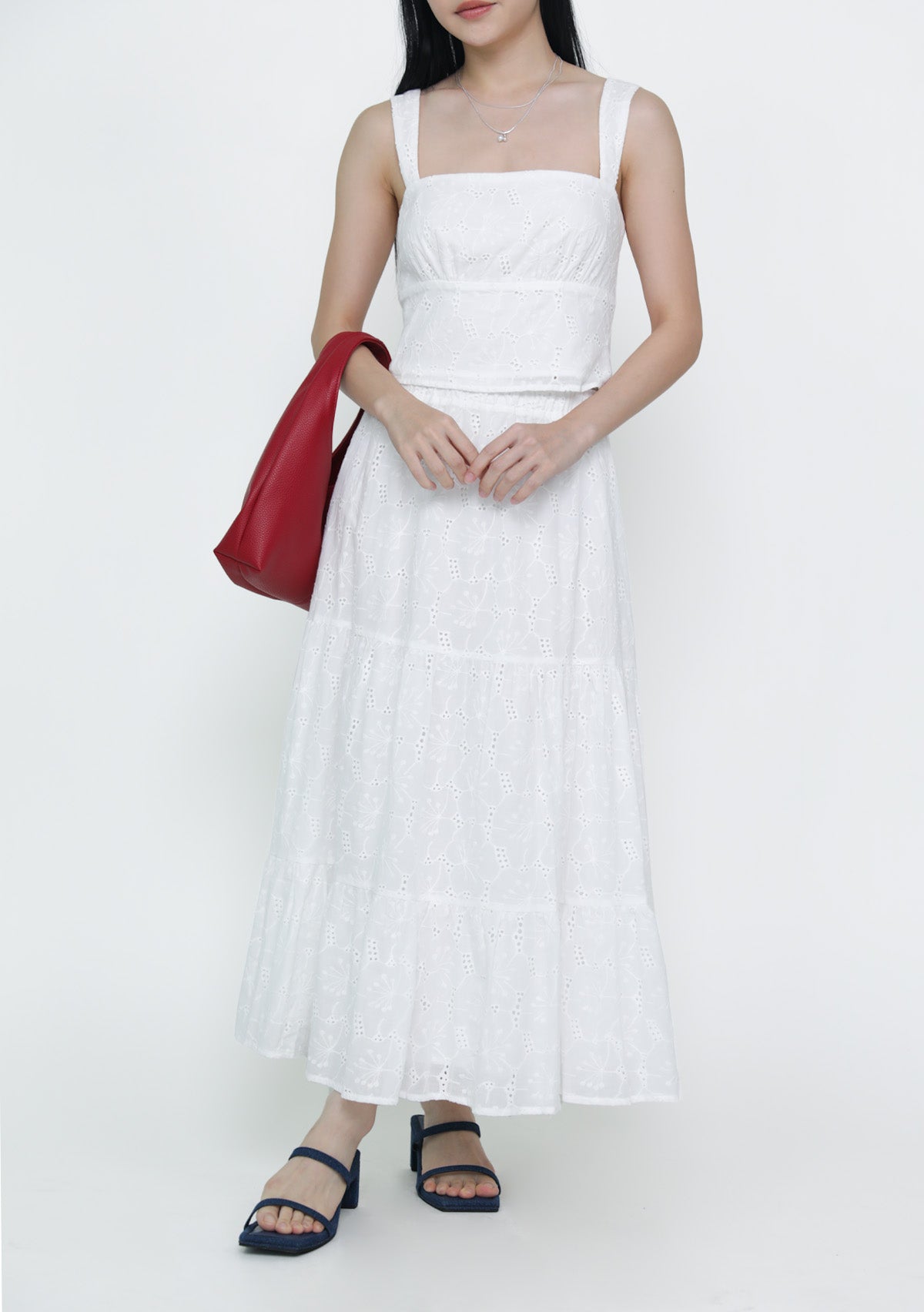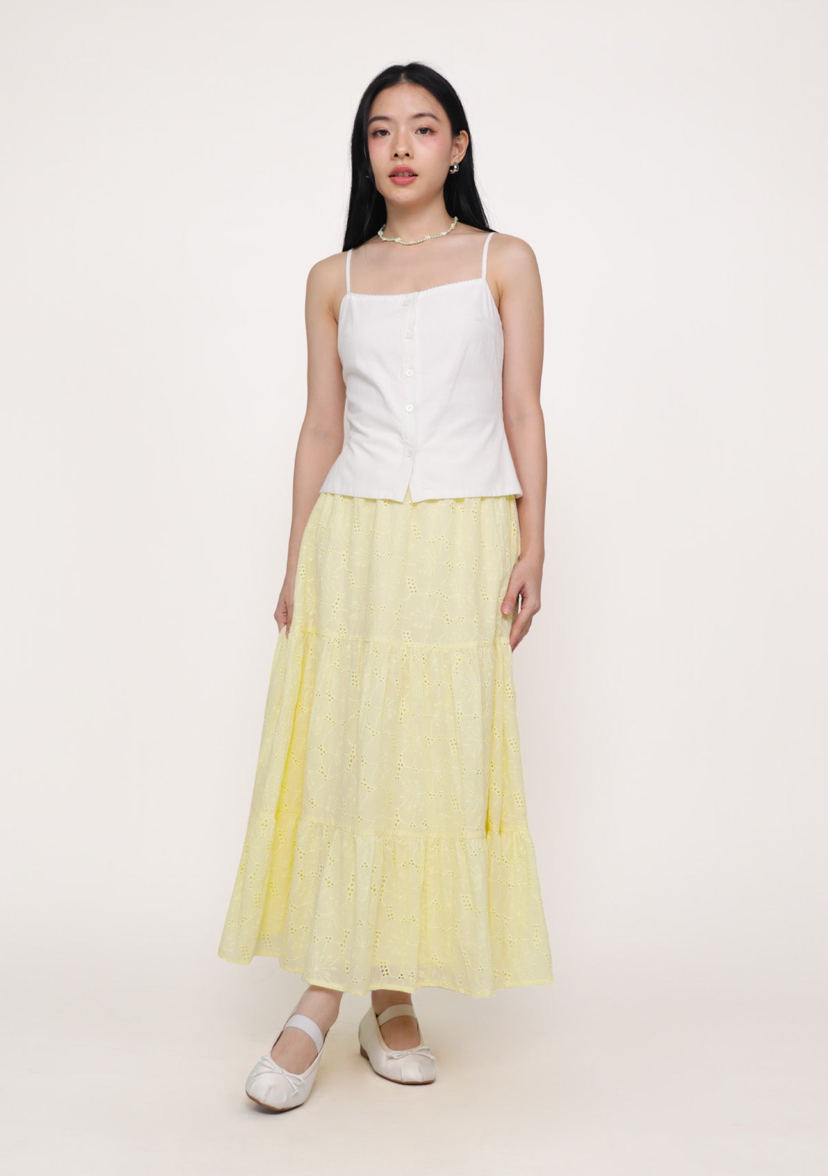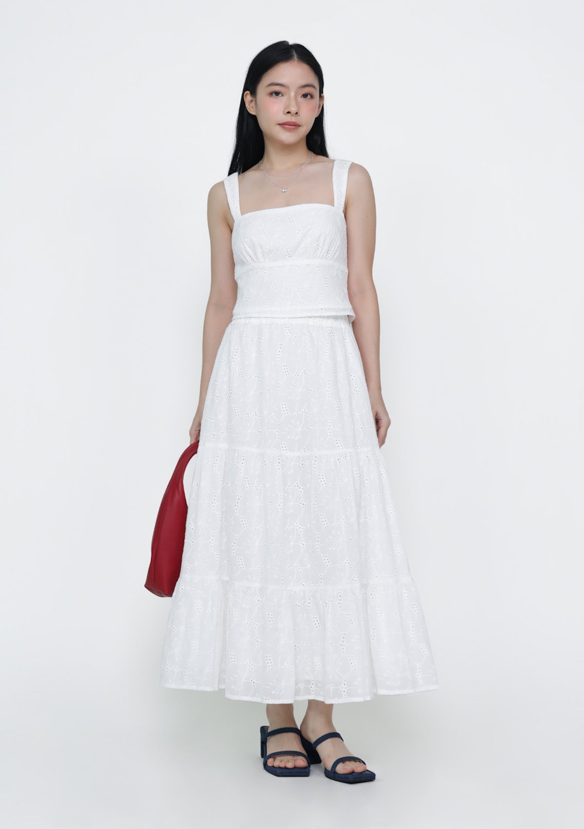 The Jardin Skirt is crafted from floral eyelet fabric and tiered for graceful volume with every step. It features an elastic waistband to keep things comfy, while bringing a touch of romance to your everyday rotation.