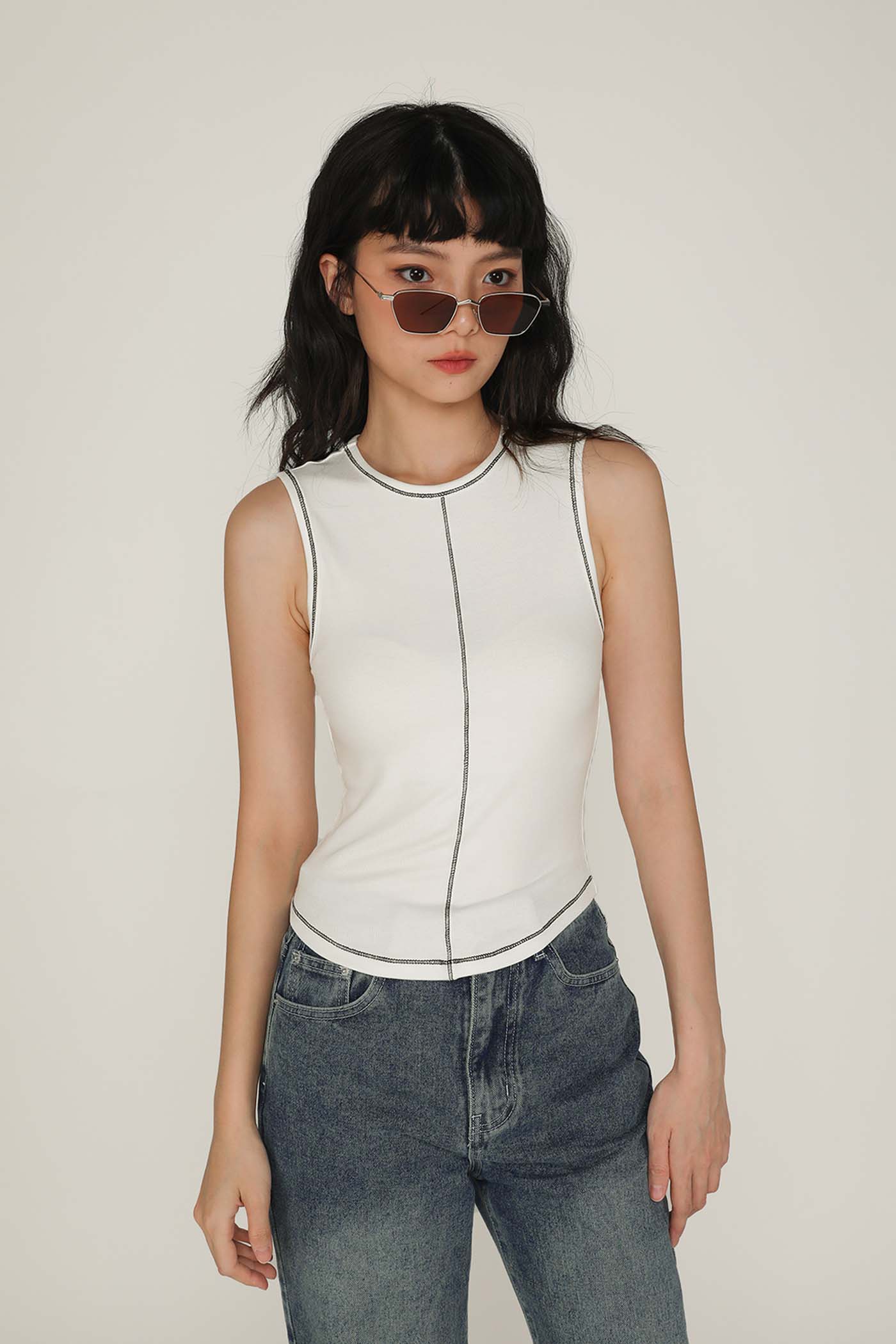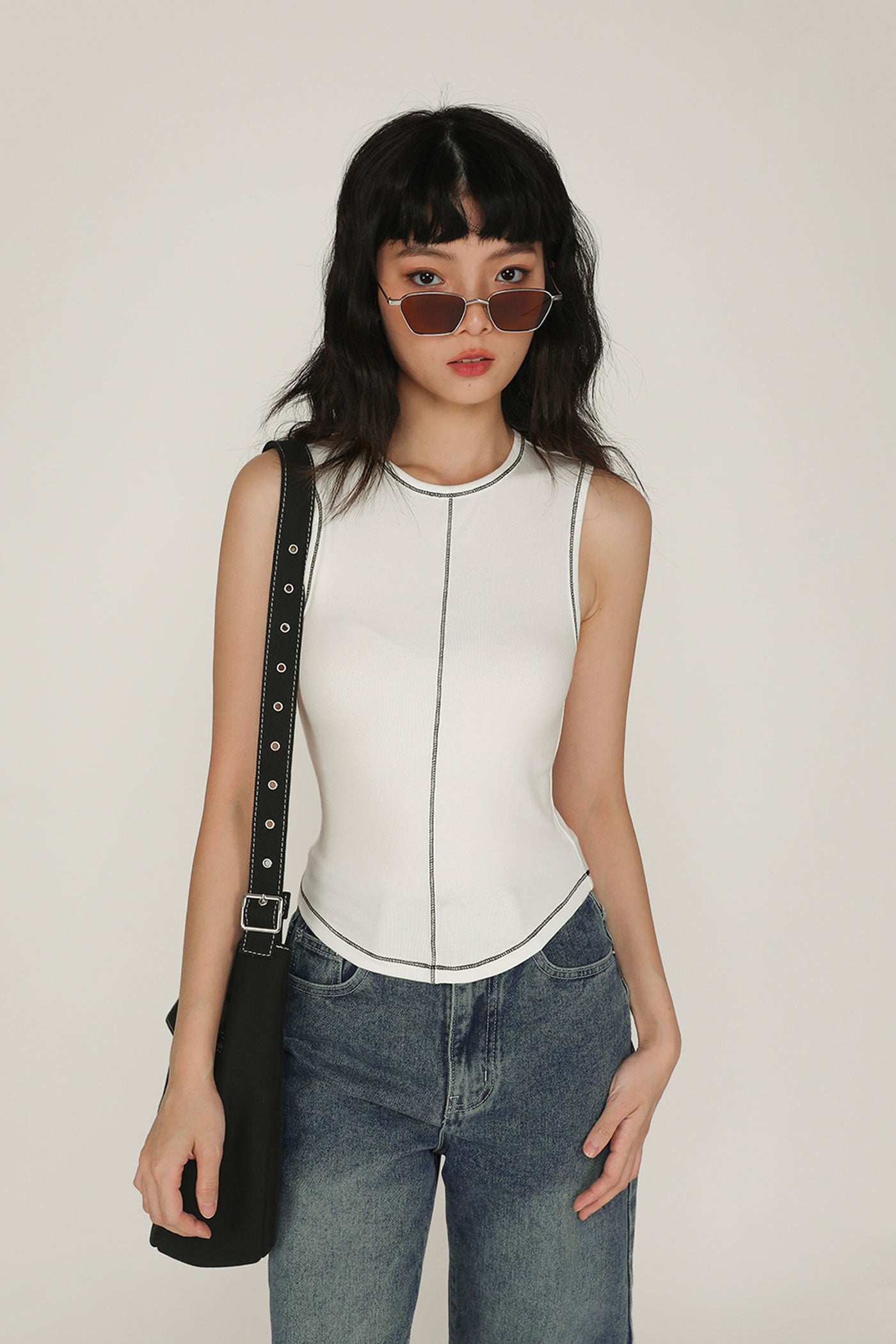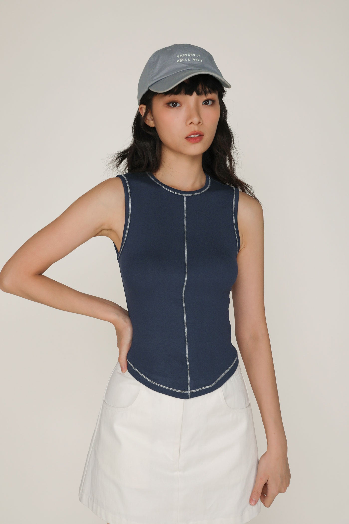 Rory Contrast Stitching Curved Hem Top Limited Edition