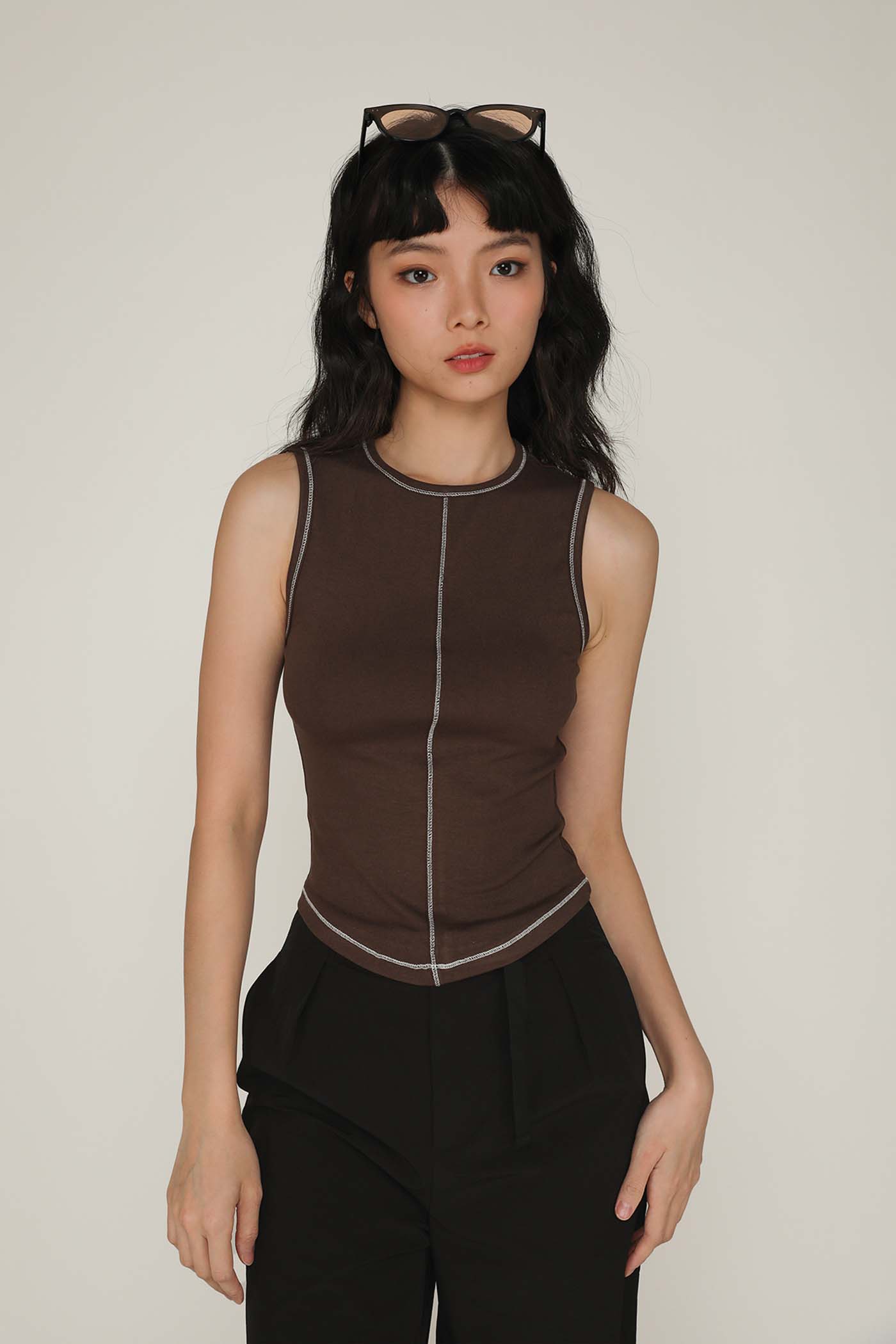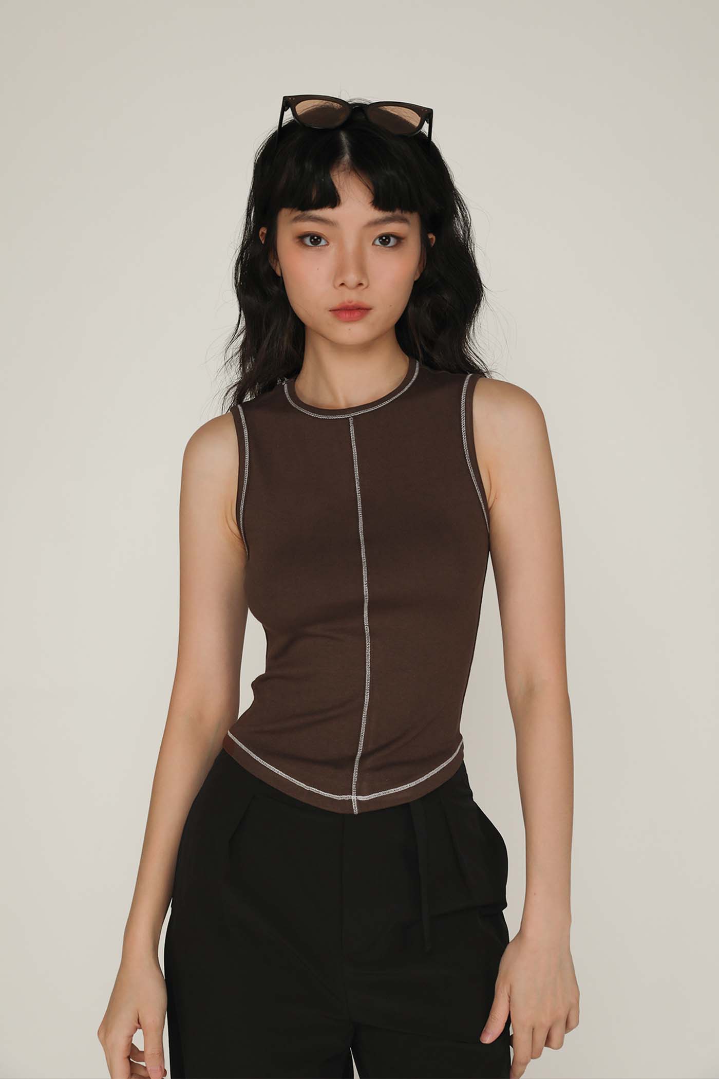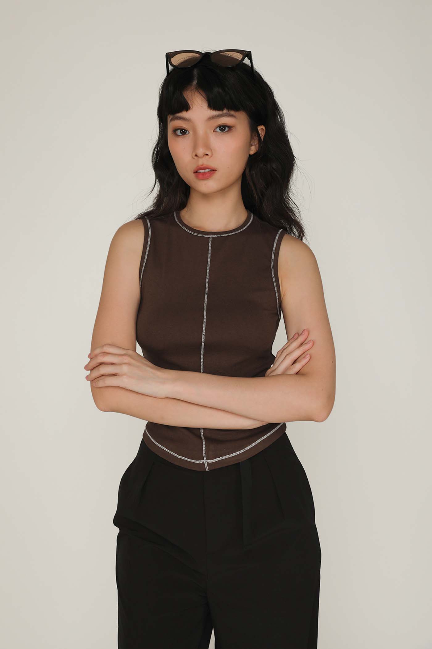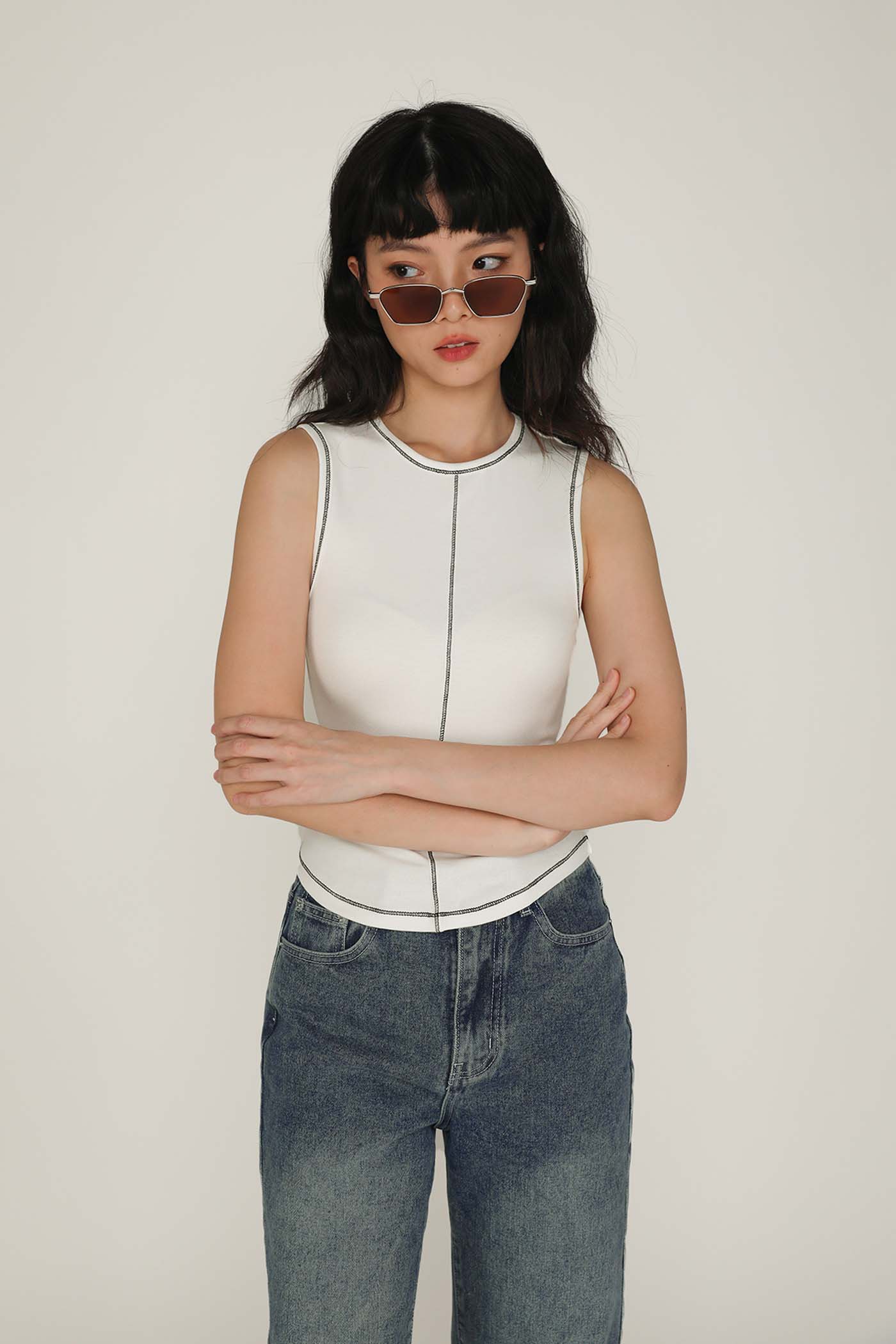 Rory Contrast Stitching Curved Hem Top Limited Edition