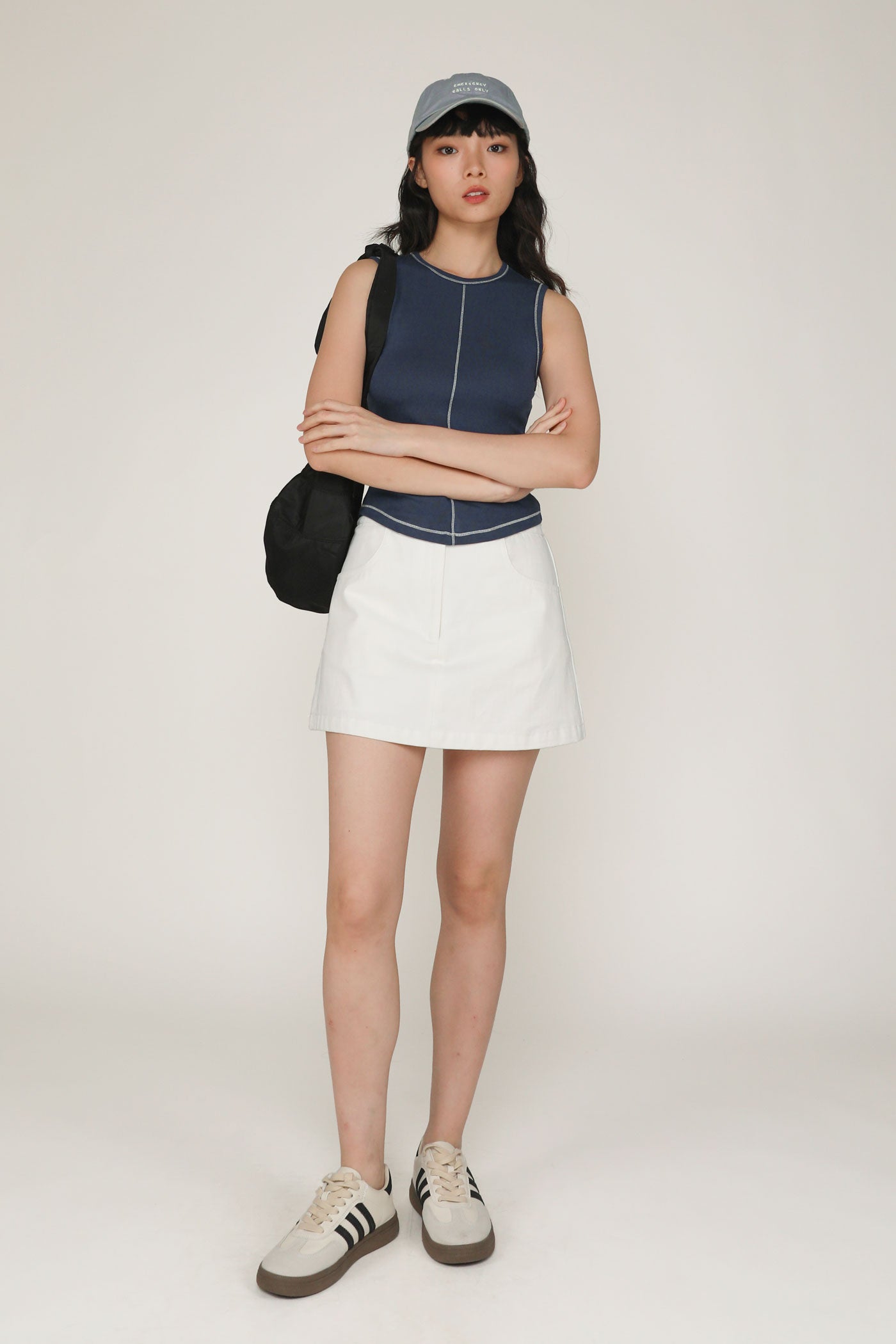 Step up your contrast game with Rory. Rory is a classic racercut top with playful contrast stitching and a curved hem. Refreshing yet versatile, this summer basic is an effortless way to express your personal style. Pair it with some simple skorts or a flowy maxi skirt to create your next go-to weekend look.