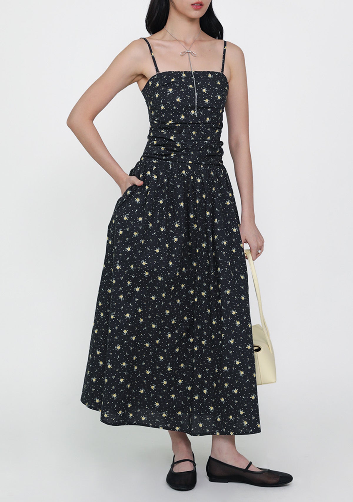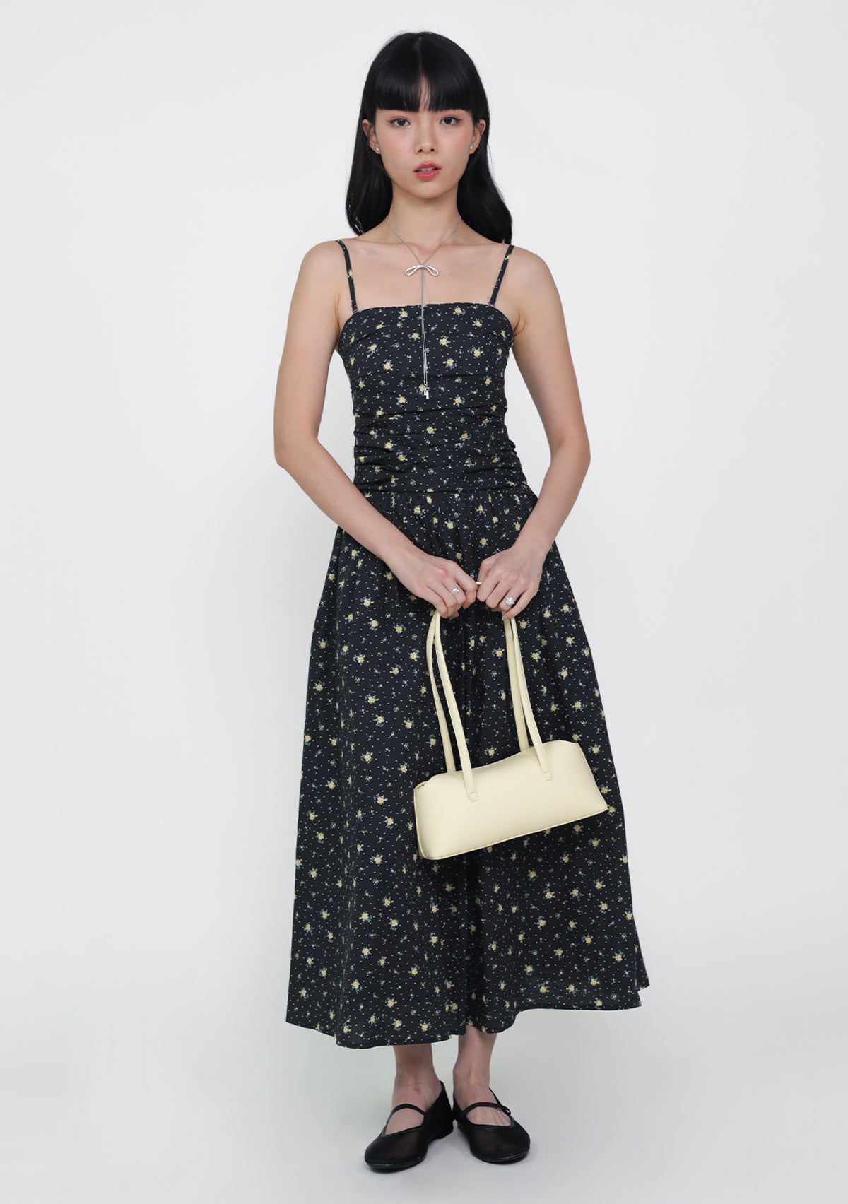The Rosabella Ruched Bodice Padded Dress is elegance with ease. Designed with a ruched bodice and smocked back, it creates a flattering silhouette while offering comfort and flexibility. Removable paddings, adjustable and removable straps, functional side pockets, and a concealed back zip make it as practical as it is charming—perfect for casual days or special occasions.