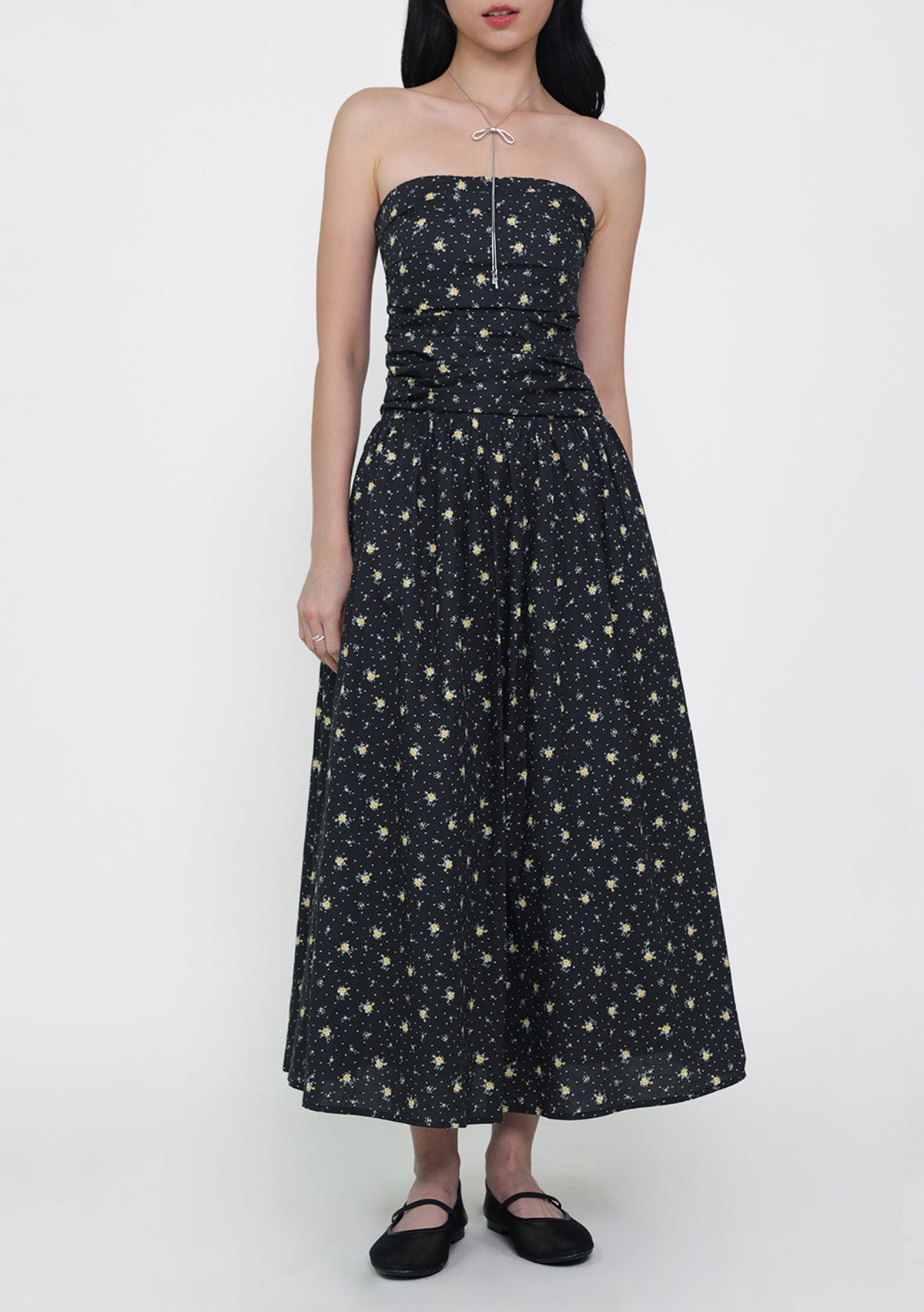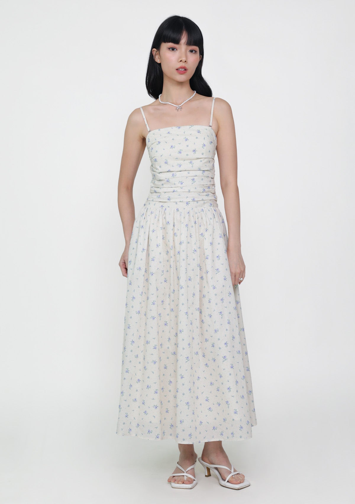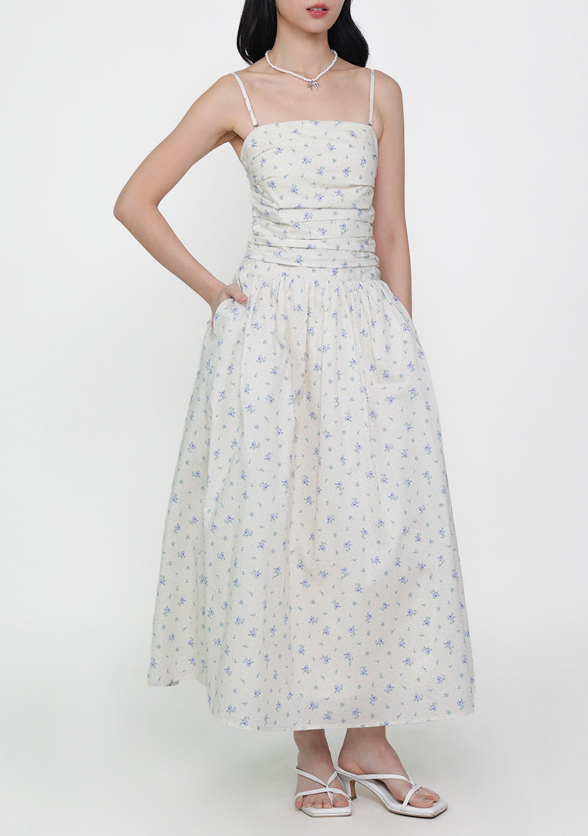 Rosabella Ruched Bodice Padded Dress features a flattering ruched silhouette, floral prints, and adjustable straps—feminine, comfortable, and versatile.