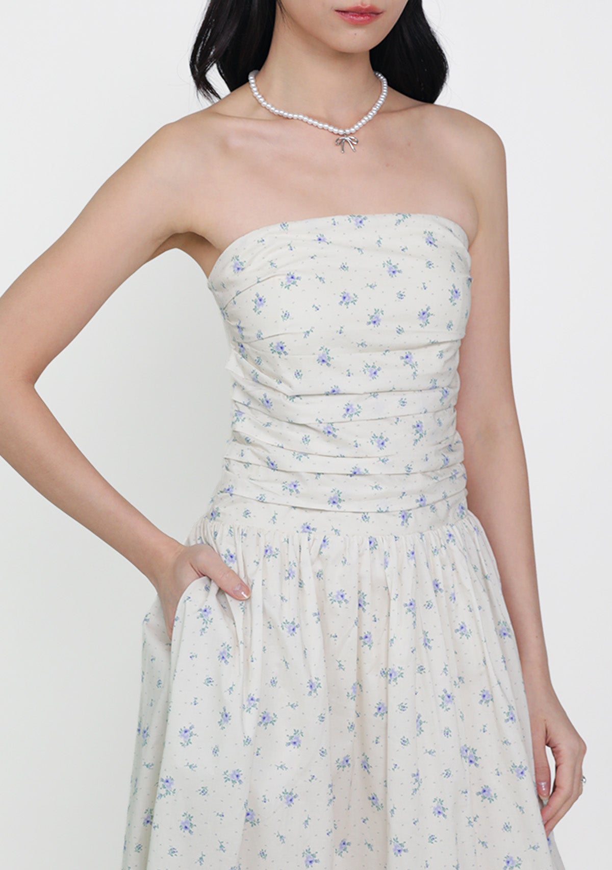 Rosabella Ruched Bodice Padded Dress (Floral)