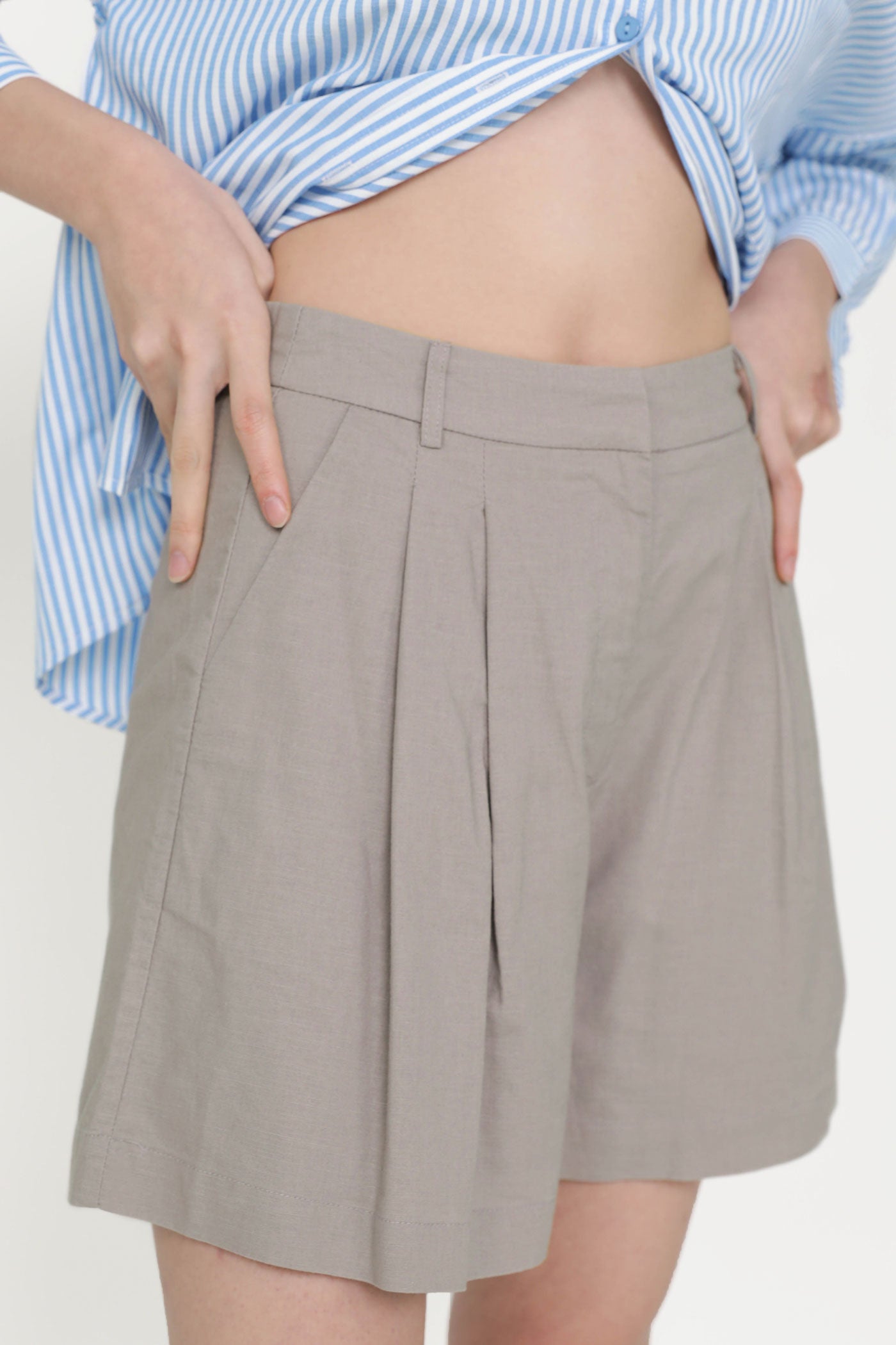 These shorts are made of cotton linen for a comfortable fit. They are complete with inner lining, functional side pockets and a hook and zip closure.