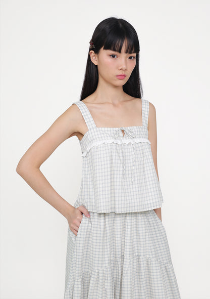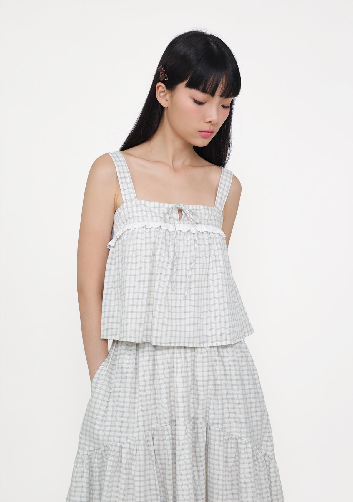 Ruby Lace Trim Babydoll Top is a feminine cotton piece with lace details and a tie-front ribbon for a soft, romantic look.