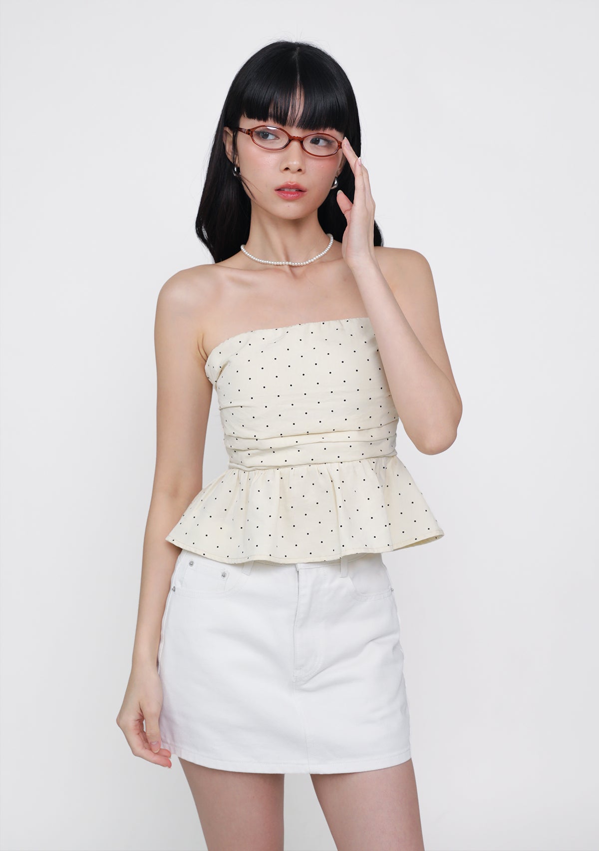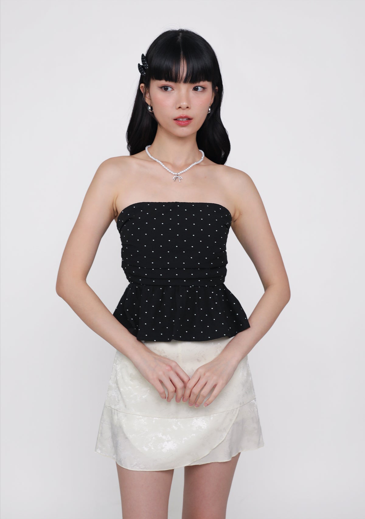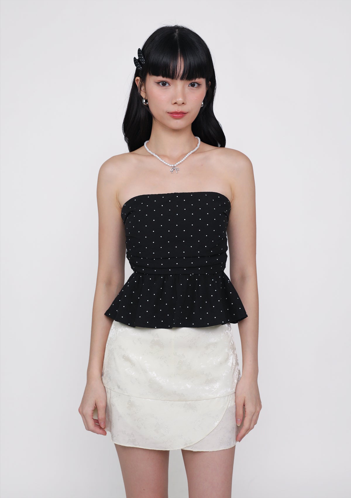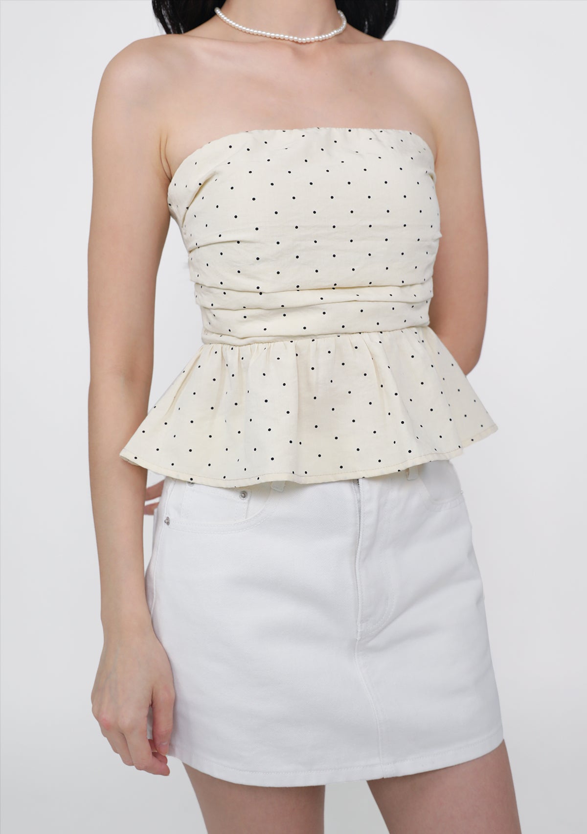 Ruko Peplum Padded Top (Polka Dot)