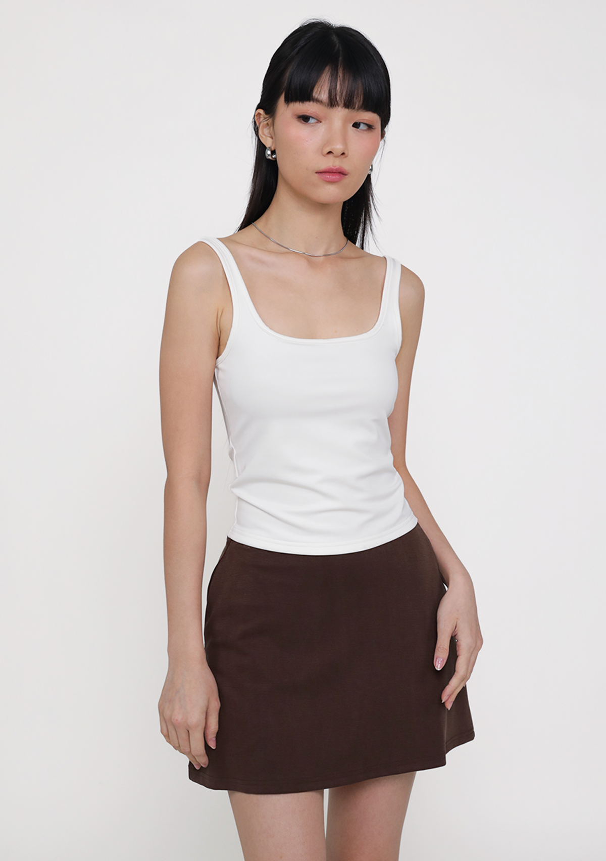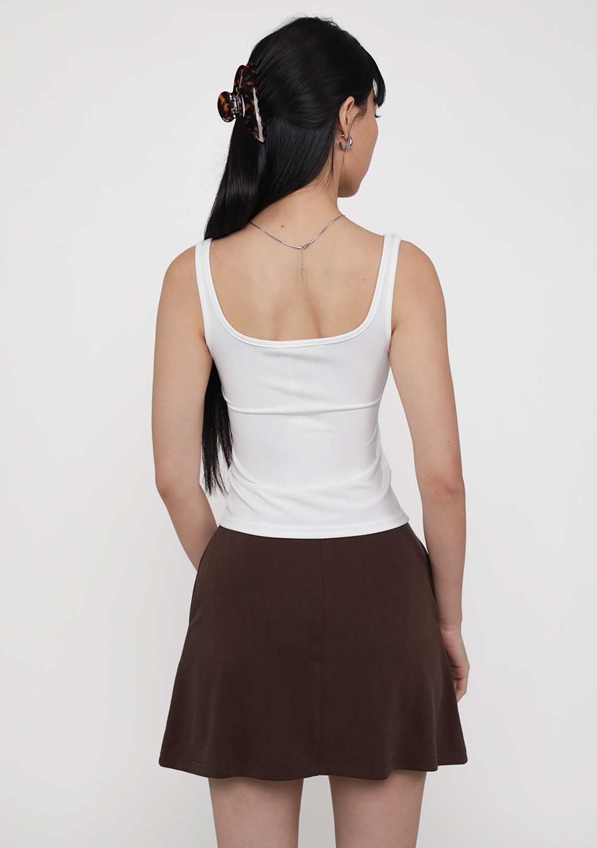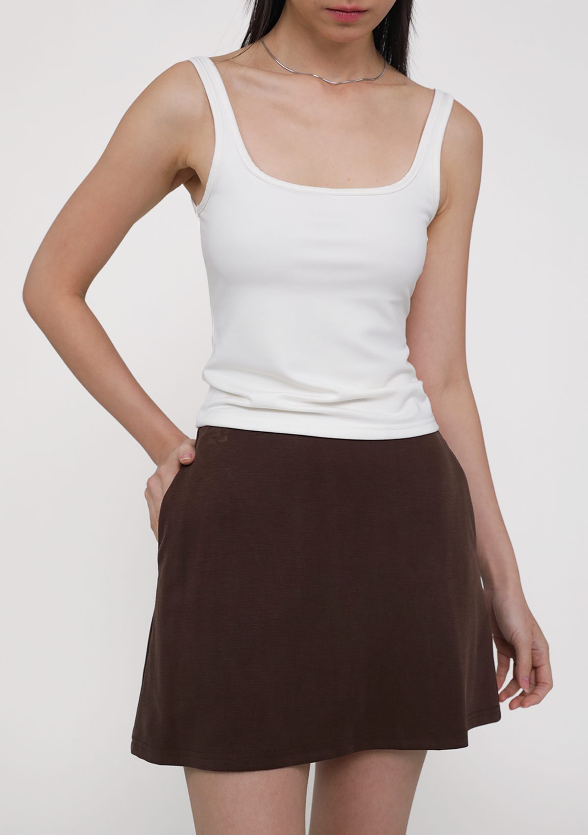 Toma Basic Flare Skorts are high-waisted A-line skorts made from polyester rayon spandex, complete with built-in shorts and flowy flare.