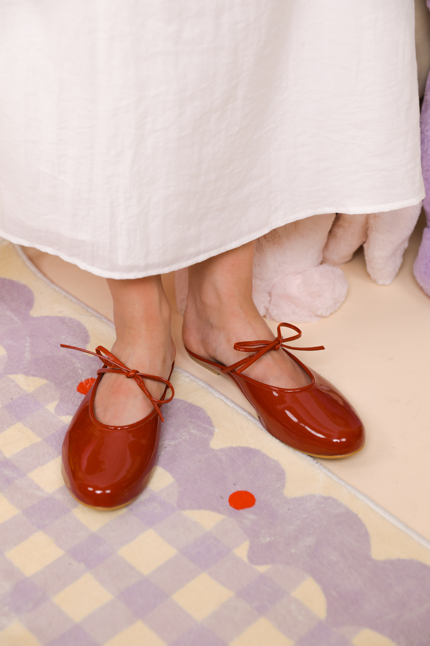 These ballet flats are made of vegan leather (patent leather for Red only).