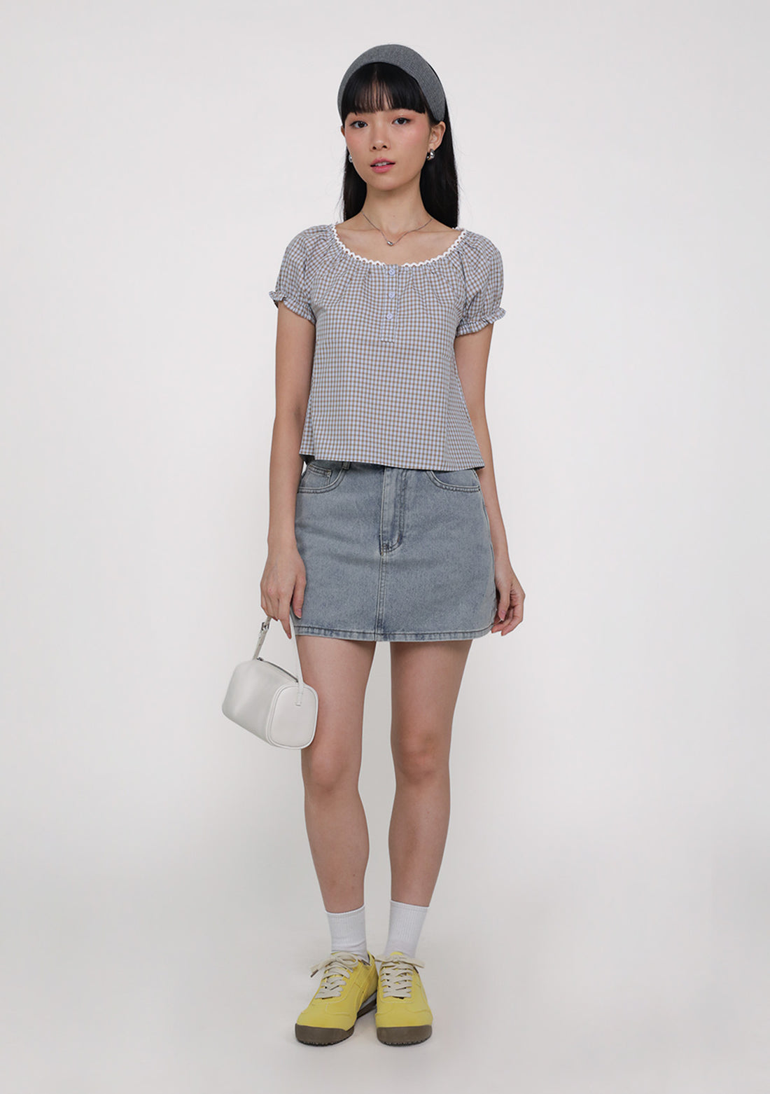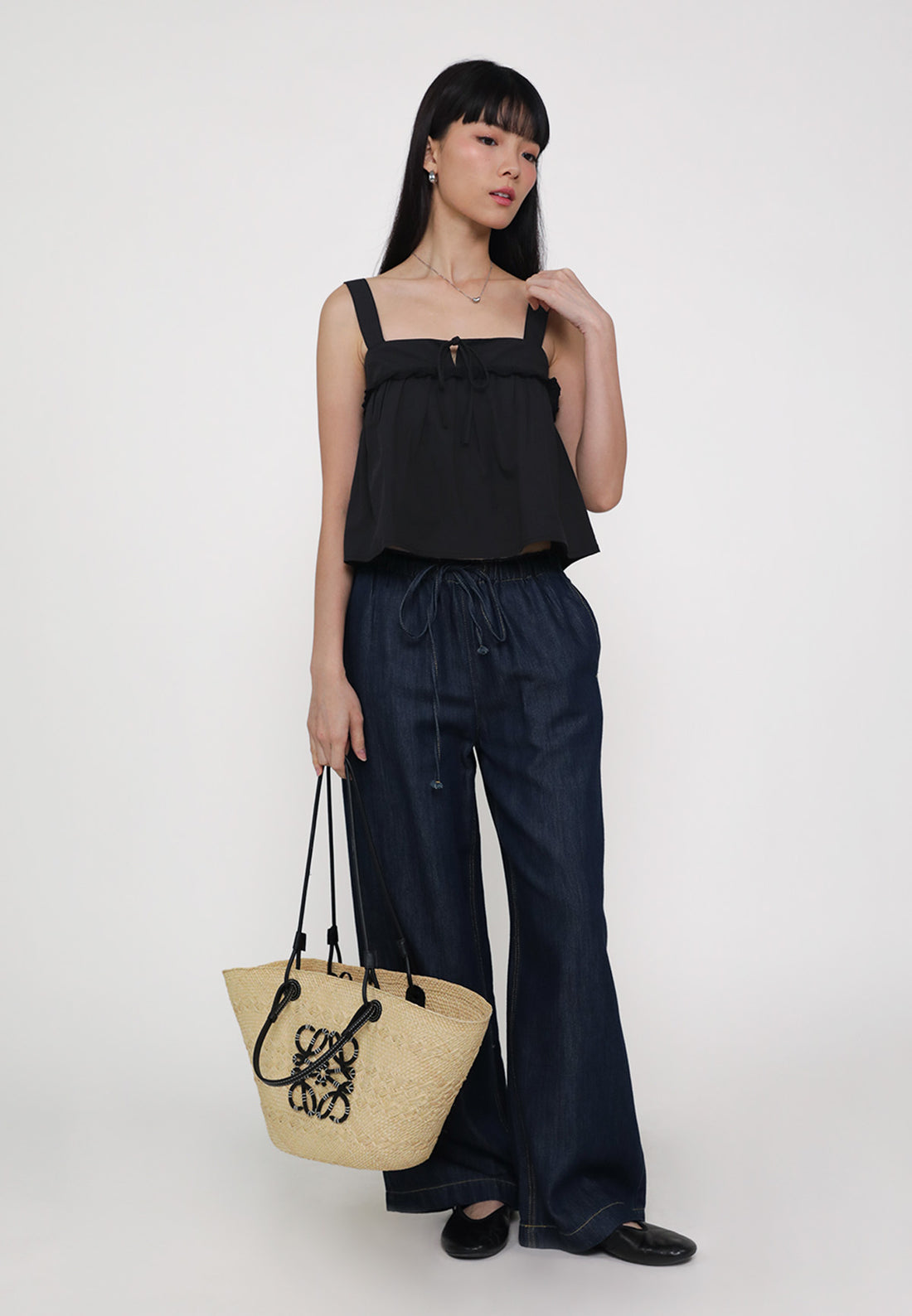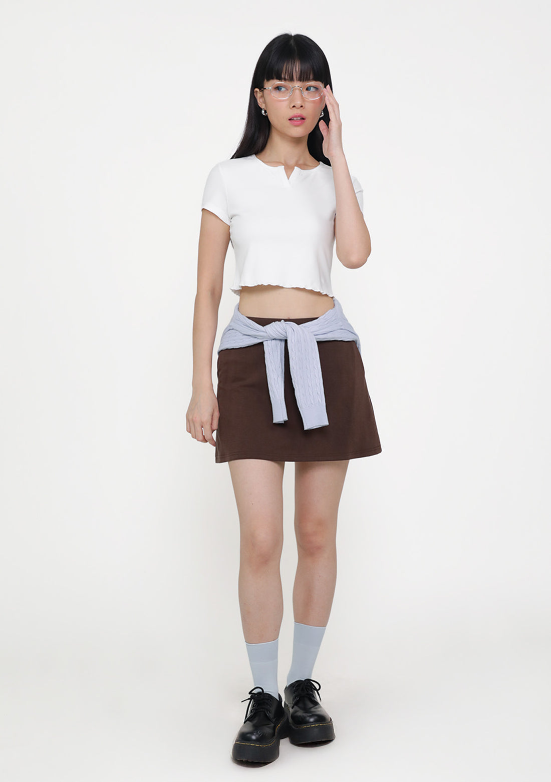 This skirt is made of cotton for a comfortable fit. It is complete with inner lining, self-tie front details and a concealed back zip.