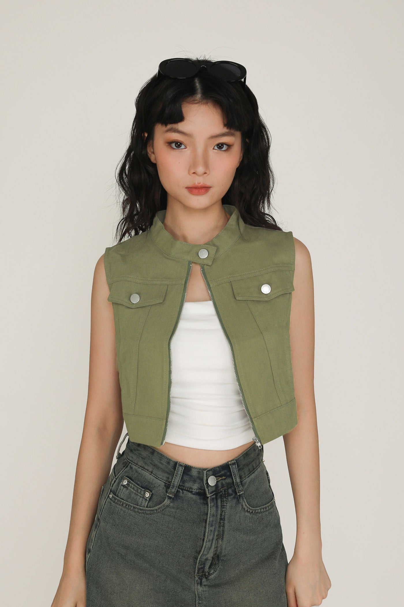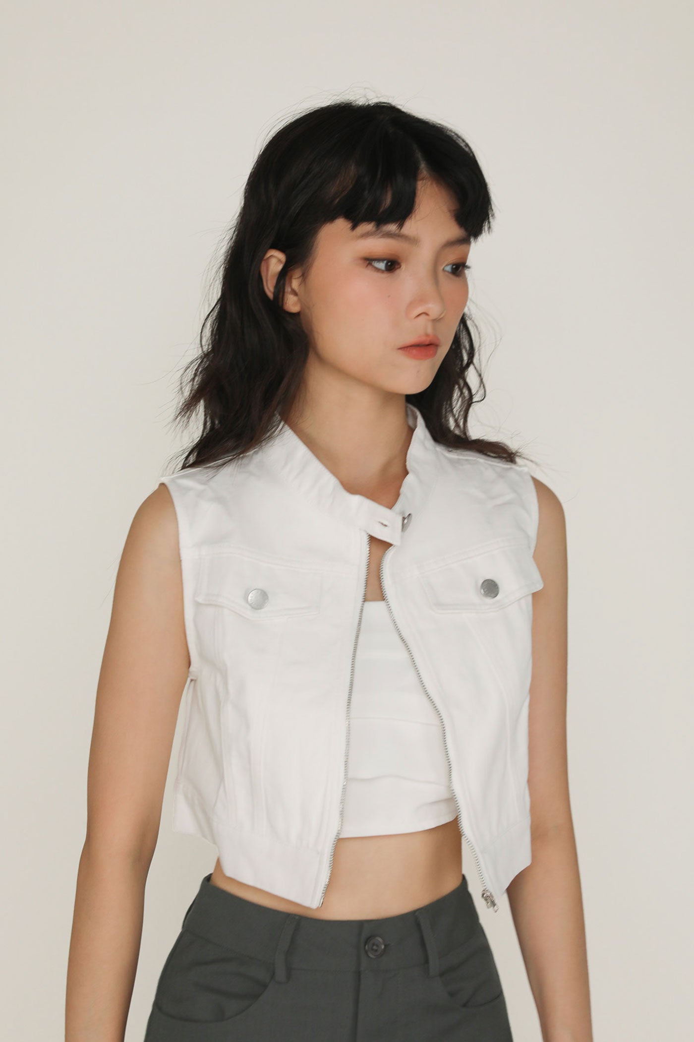 Zenia brings the edge to every fit. Zenia Utility Vest Top boasts a cool chic mood with a boxy silhouette and chest pocket details. Top or outerwear, this vest is an effortless way to level up a casual fit with a hint of boyish charm. Style it your way to create a unique ensemble.